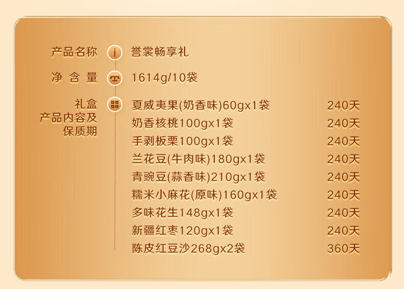 包装清单: 大吉大粒坚果礼盒1614g × 1
