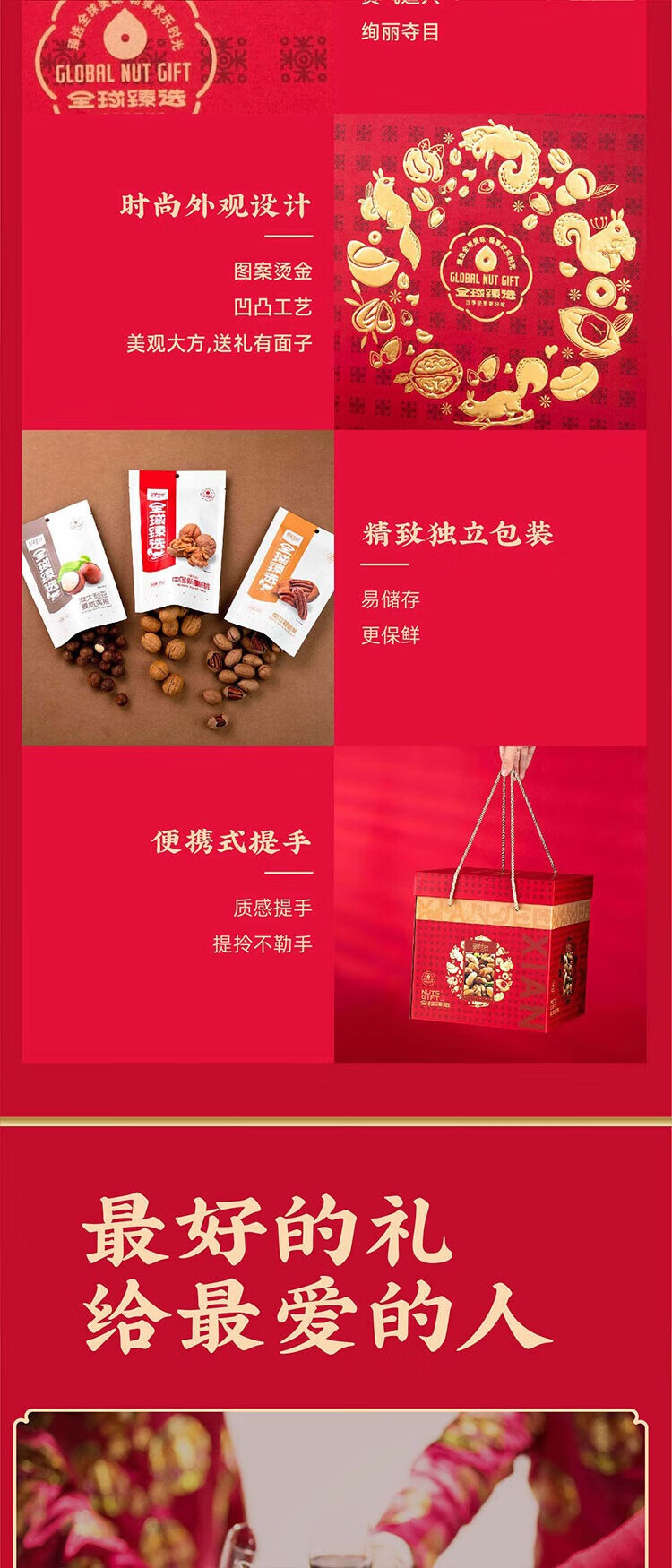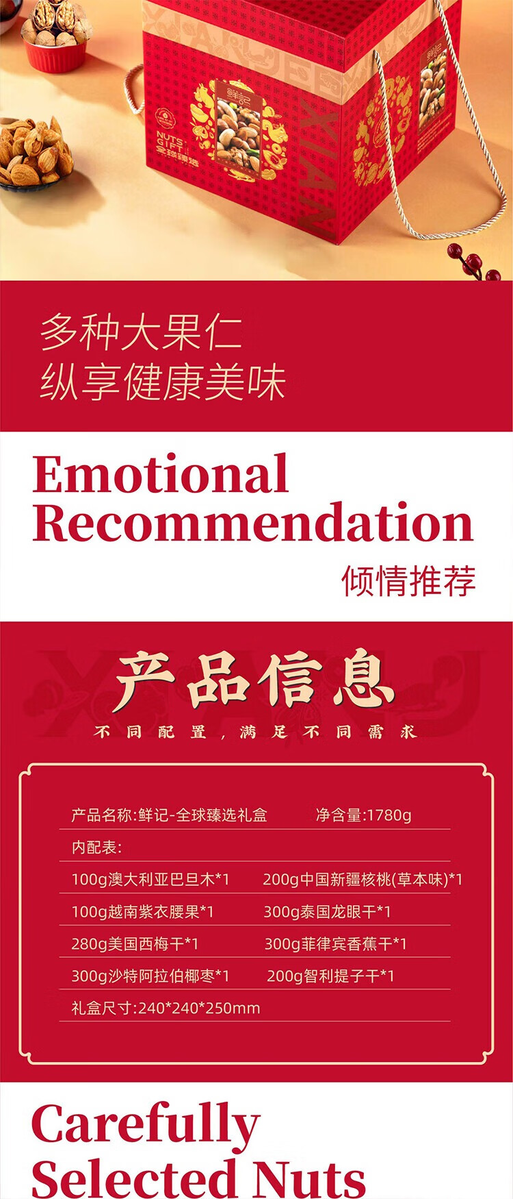 • 商品名称:鲜记 全球臻选礼盒1.78kg休闲坚果零食精选好果货大礼包团购春节 鲜记 全球臻选礼盒1.78kg 休闲坚果零食 过年年货送礼大礼包 礼盒装1.78kg全球臻选礼盒 XS-7/个