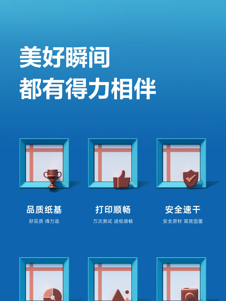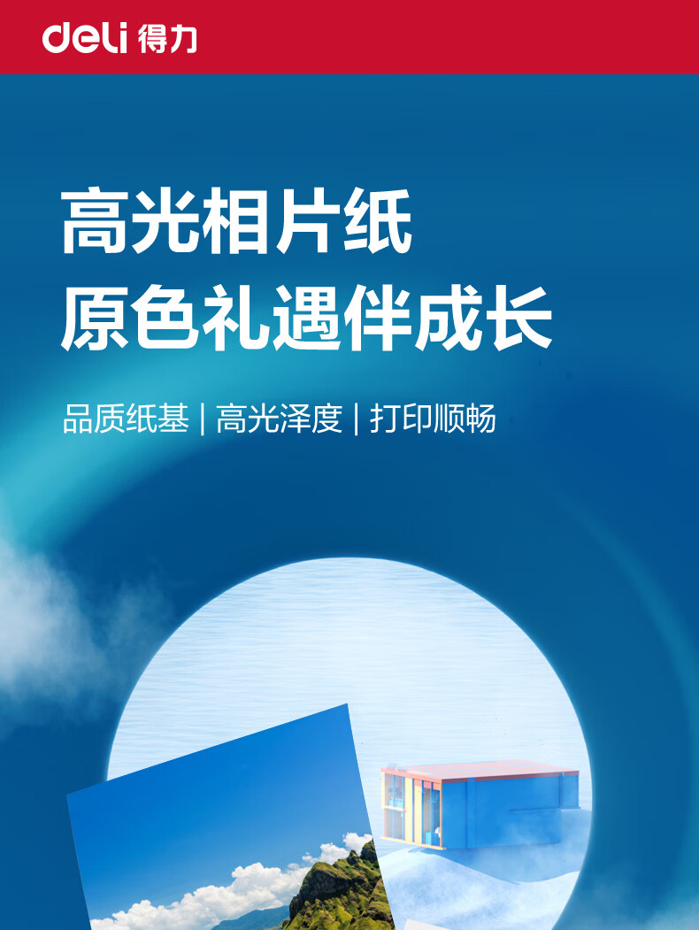 电脑、办公  > 办公用纸  > 相片纸  >  得力/deli  >  得力(deli)6英寸 230g高光相纸 彩色喷墨照片打印纸 高光泽相片纸 100张/盒 ZX003 ZX003/包