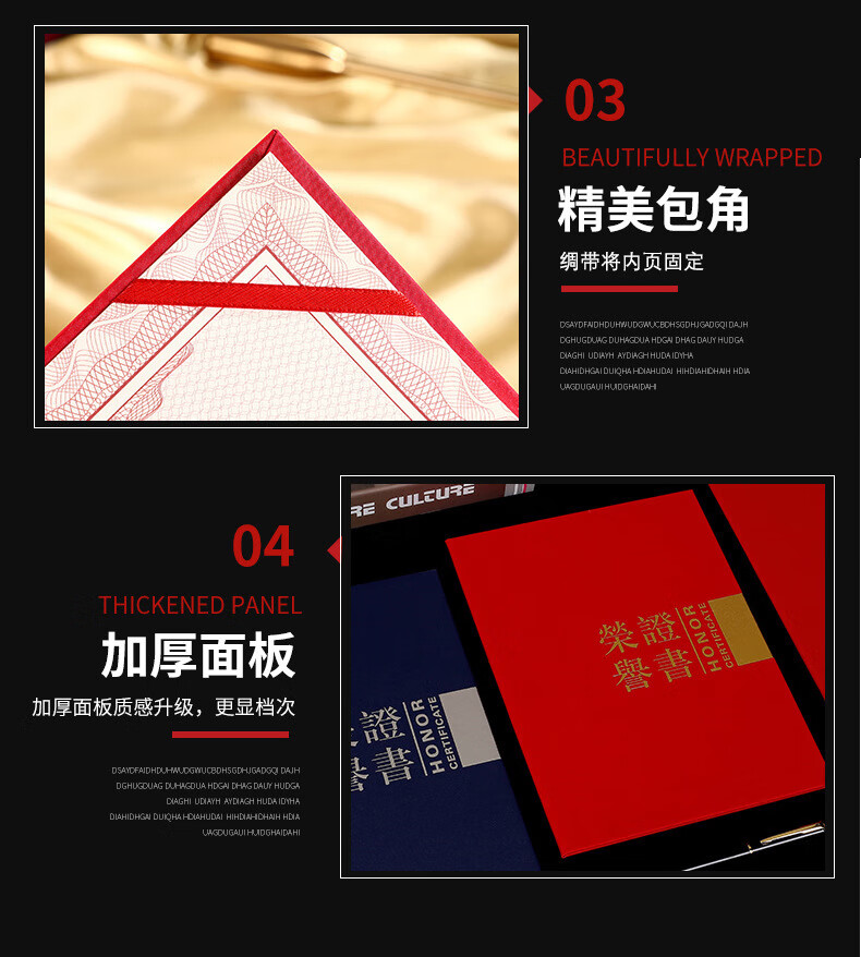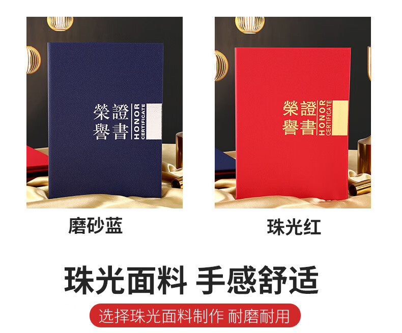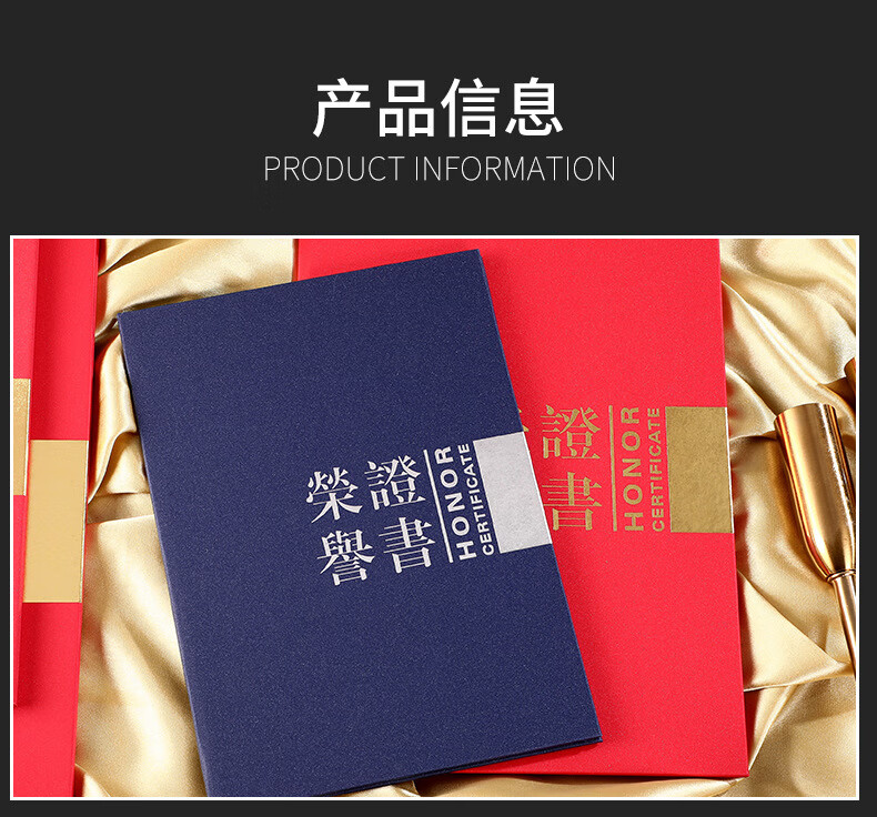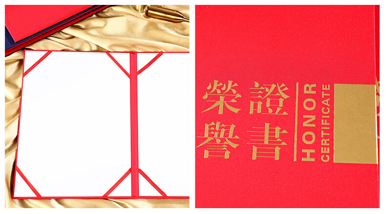 • 商品名称:苏寒珠光对折12K荣誉证书8K横版证书壳印logo证书封套 款式一红色A4 款式一红色A4/个