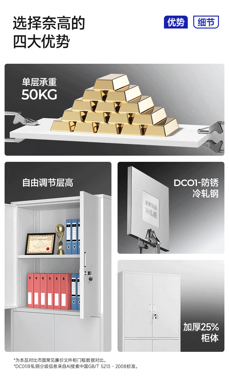 • 商品名称:奈高(NAIGAO)文件柜办公柜钢制铁皮柜资料柜档案柜储物柜带锁员工柜凭证柜 文件柜铁皮柜/台