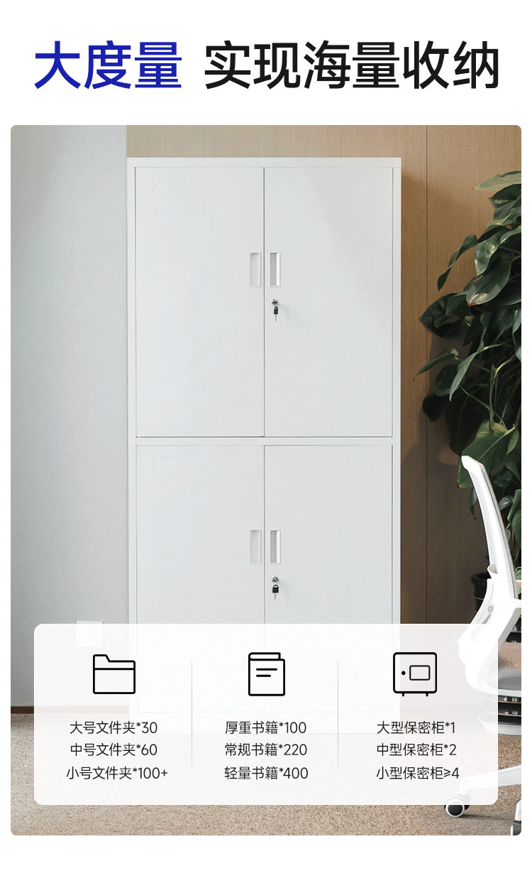 奈高(NAIGAO)文件柜办公柜钢制铁皮柜资料柜档案柜储物柜带锁员工柜凭证柜 文件柜铁皮柜/台