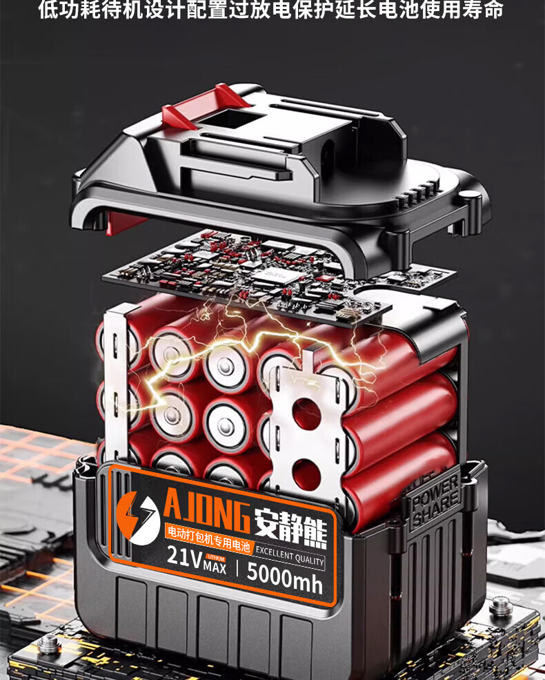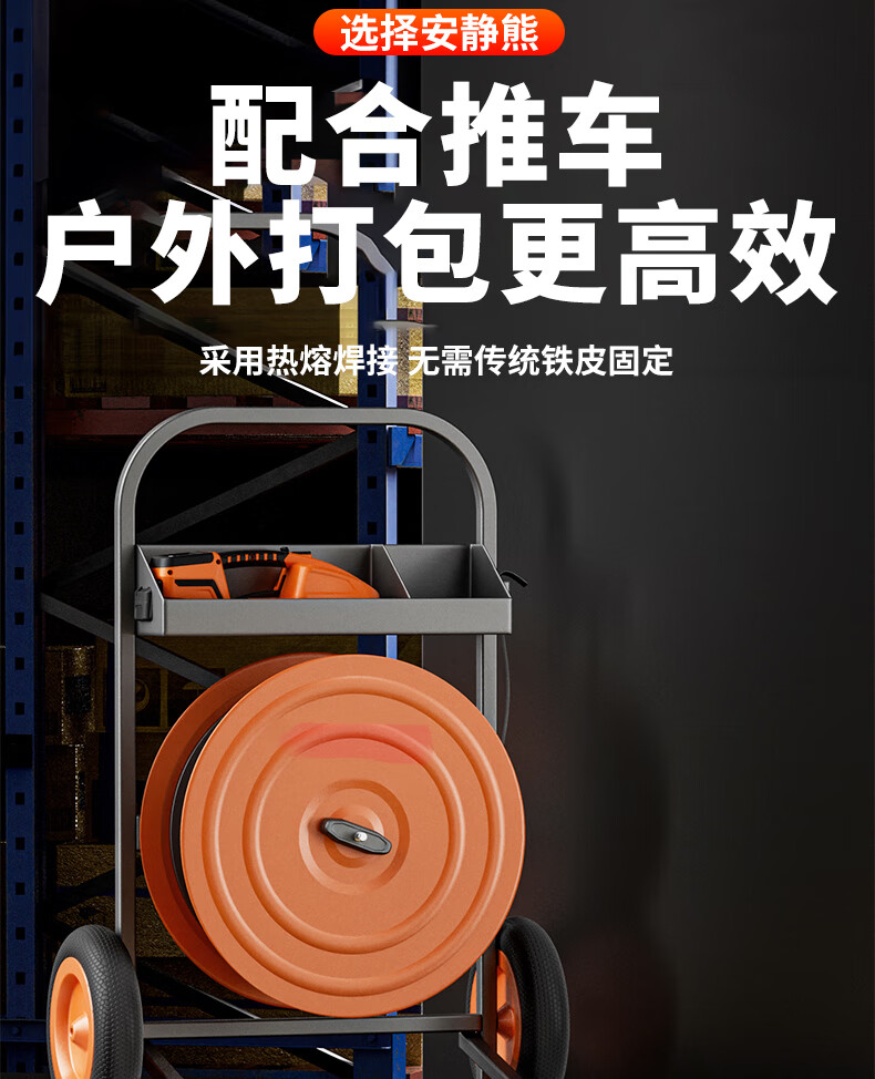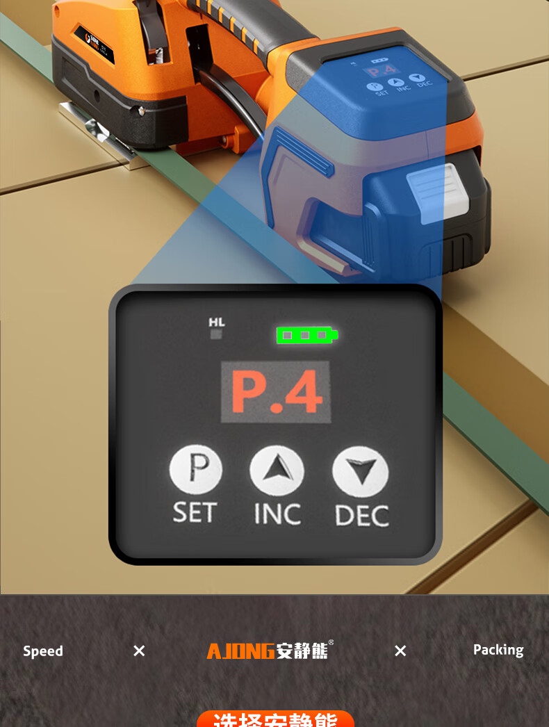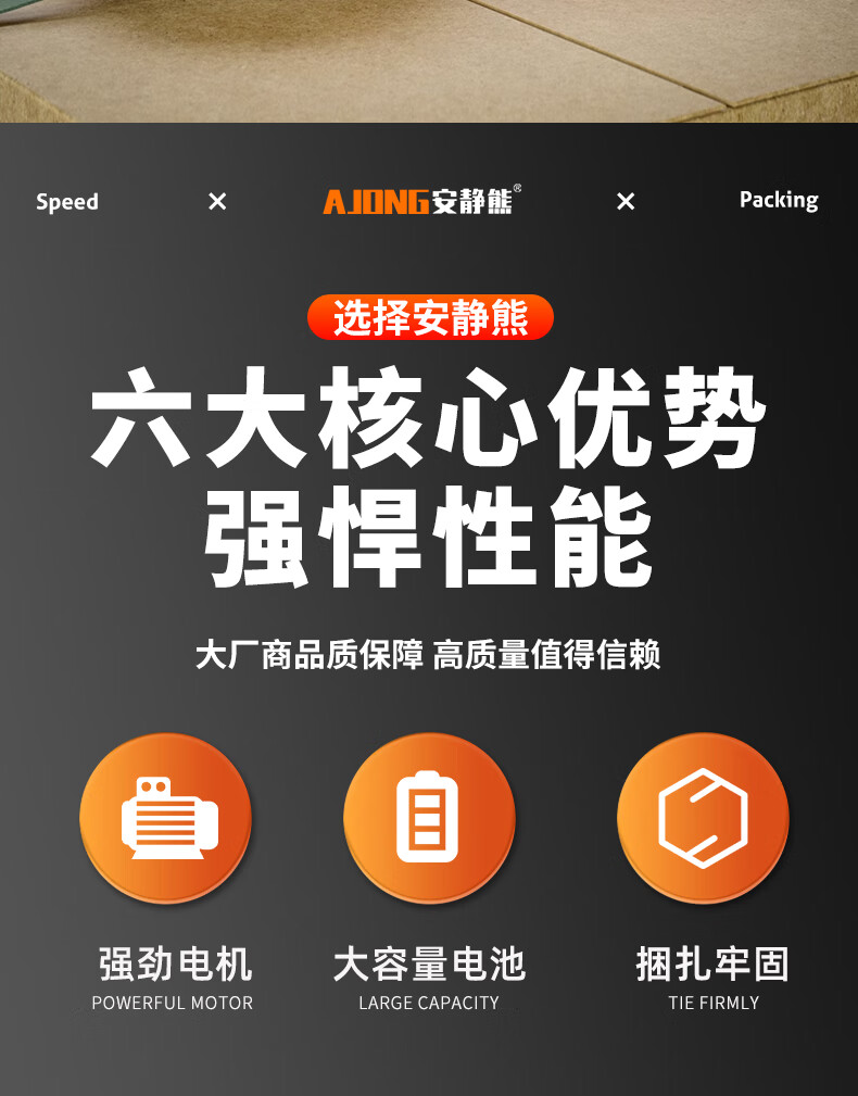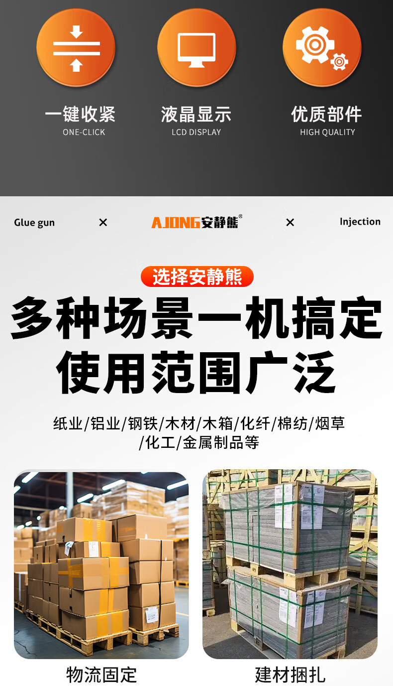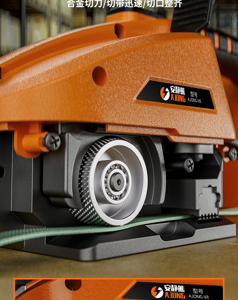 • 商品名称:安静熊电动打包机全自动捆扎带收紧一体捆扎热熔断手提式电动塑料带PP带 AJONG-V8/台