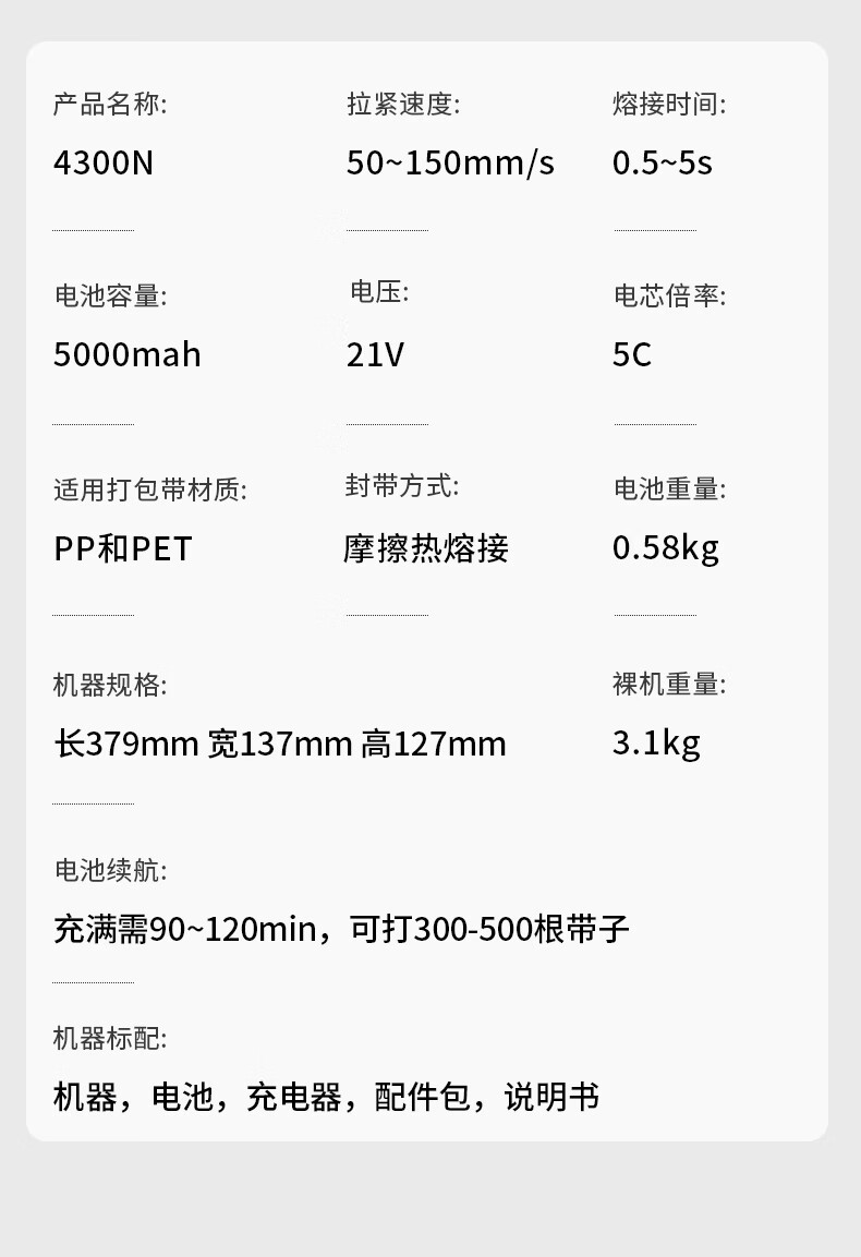 包装清单: 打包机 电池 充电器 配件包 说明书