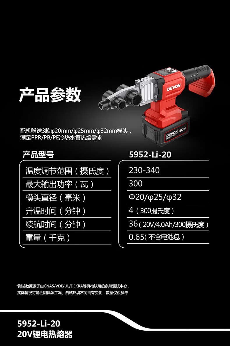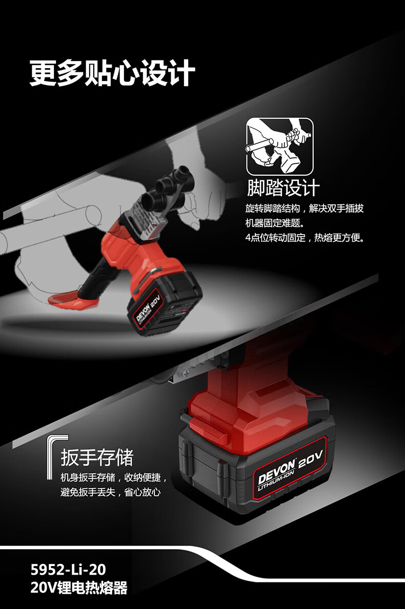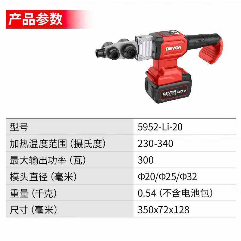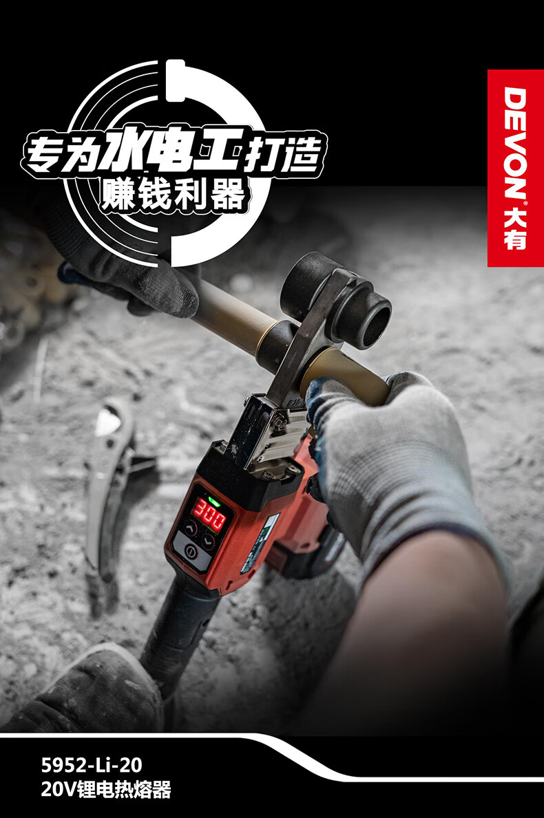 • 商品名称:大有(Devon)20V热熔器焊接机热熔机熔接器家用大功率热容器 5952机头 5952/台
