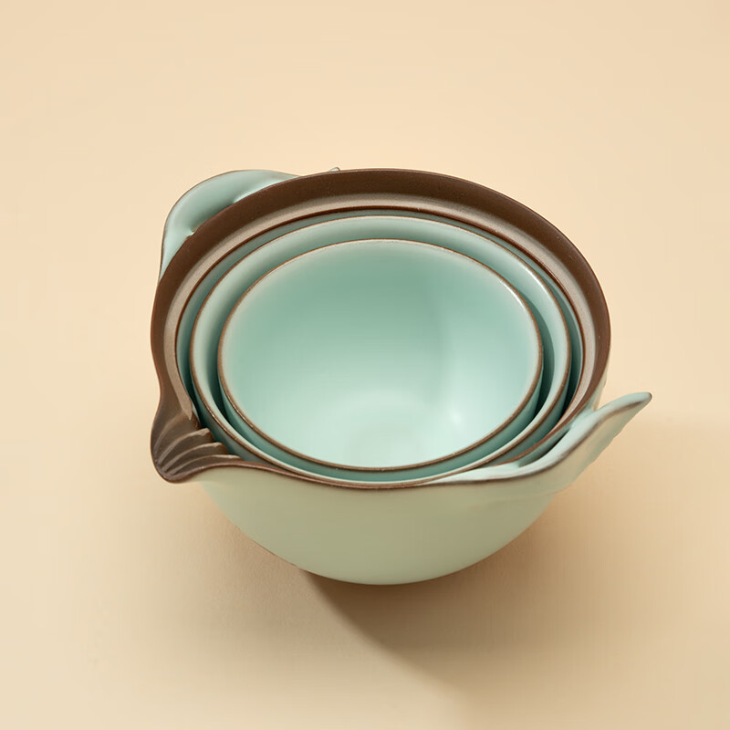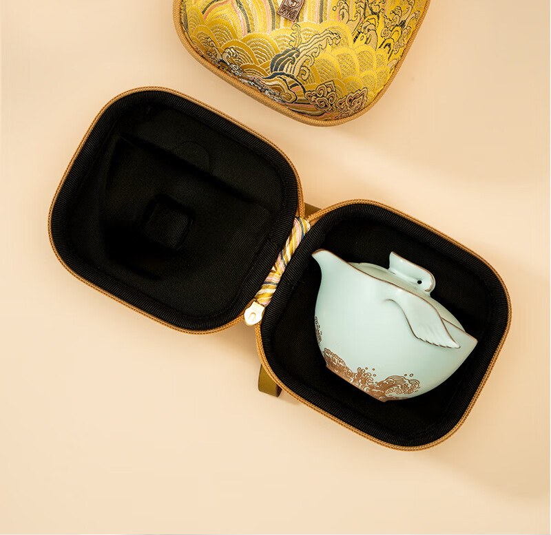 万仟堂(Edenus)旅行茶具 陶瓷高档便携户外茶具套装快客杯 1壶2杯1包 鲲 粉青釉 旅行茶具/套