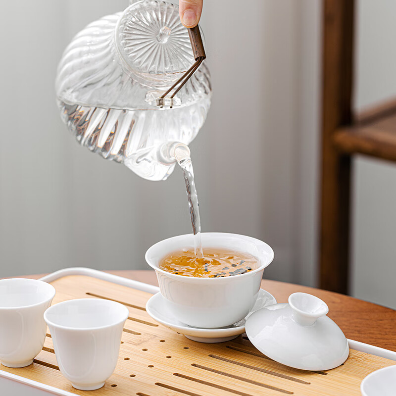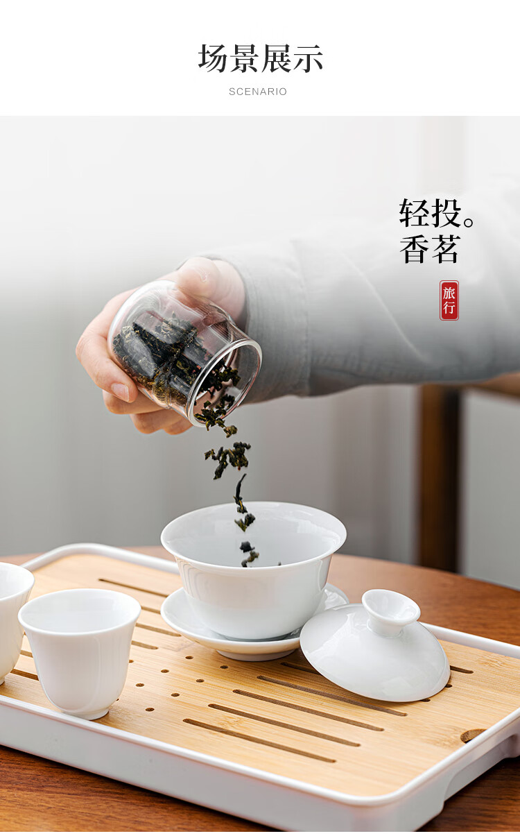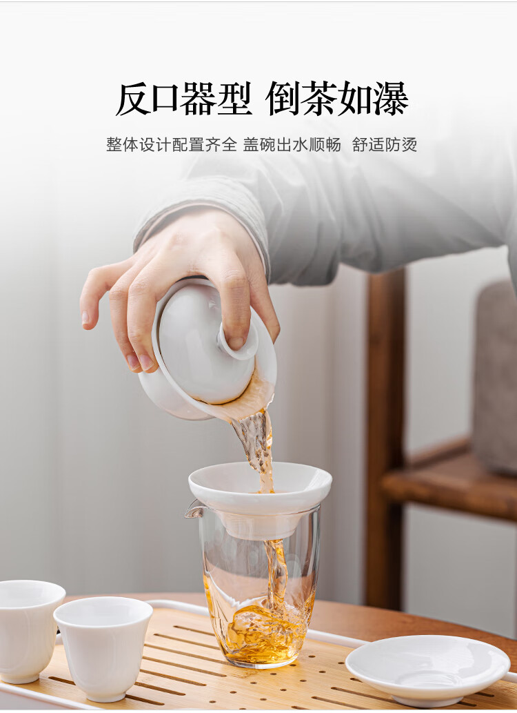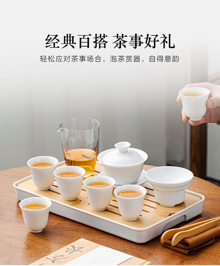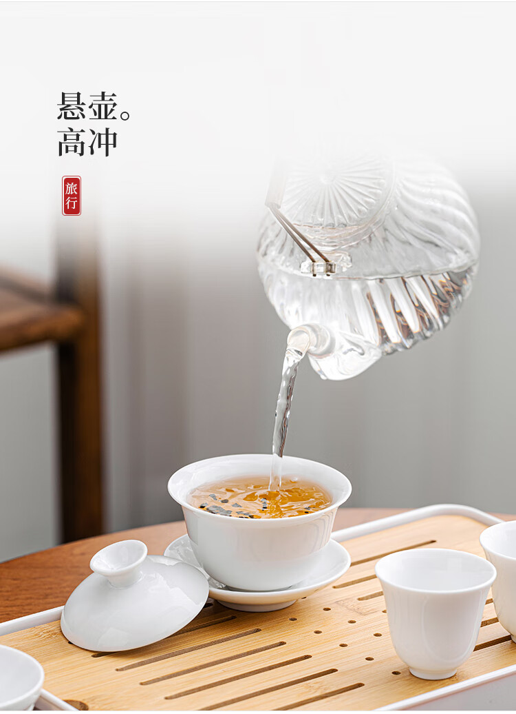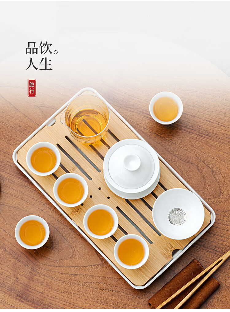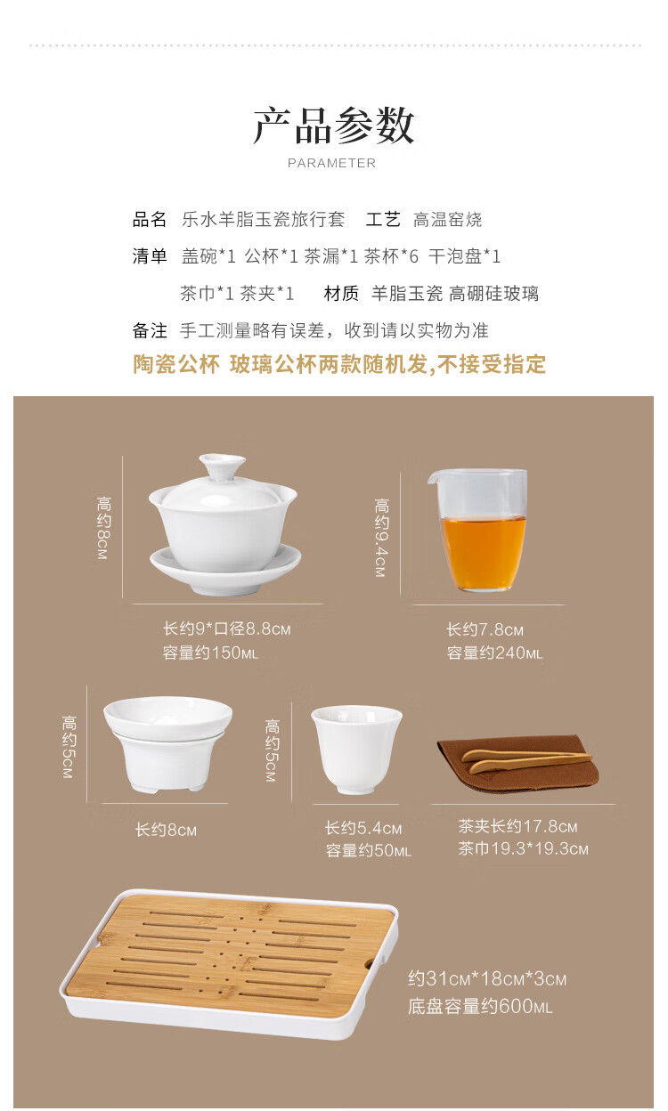 包装清单: 盖碗*1,公杯*1,茶杯*6,茶滤*1,茶盘*1,旅行包*1,茶巾*1,茶夹*1