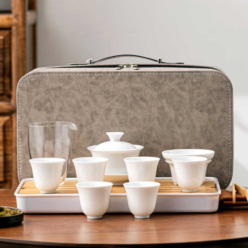 厨具  > 茶具  > 整套茶具  >  金镶玉  >  金镶玉 旅行茶具 乐水羊脂玉瓷套装-HC 乐水茶具-HC/套