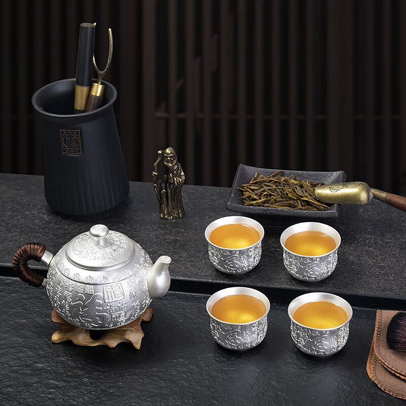 求巧茶具套装镀银茶杯家用功夫茶具渡银茶壶杯子礼品亚银色一套 1个 足银【亚银色】含包装/个
