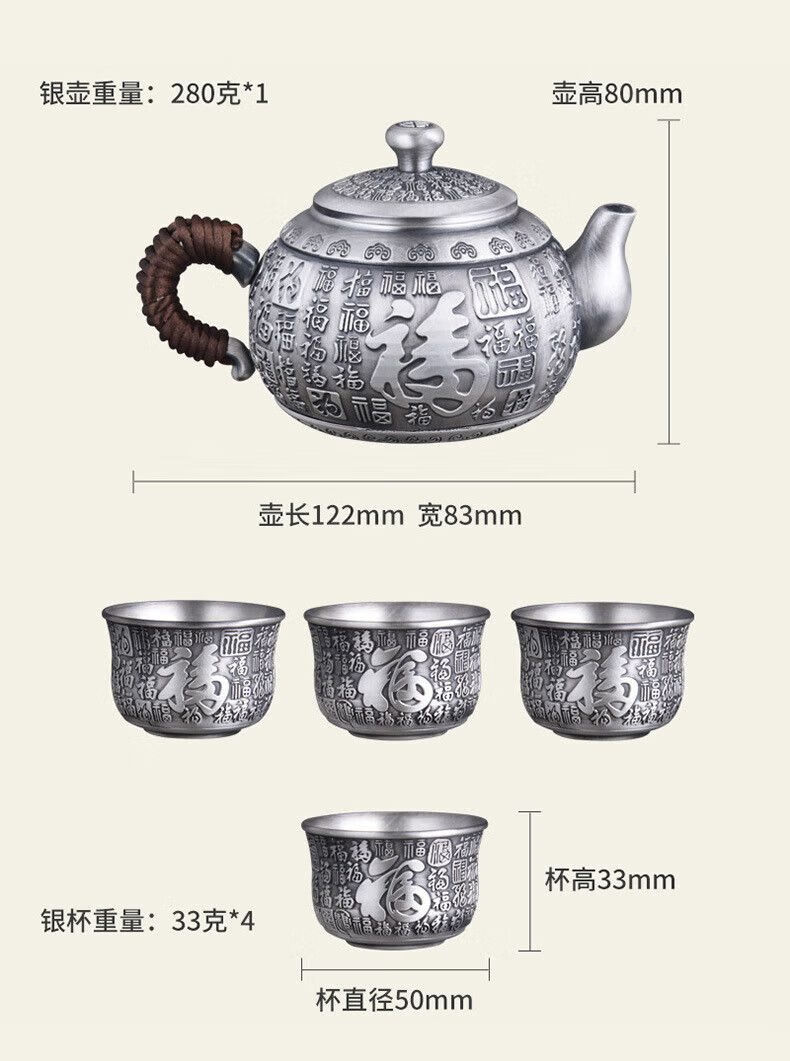 • 商品名称:求巧茶具套装镀银茶杯家用功夫茶具渡银茶壶杯子礼品亚银色一套 1个 足银【亚银色】含包装/个
