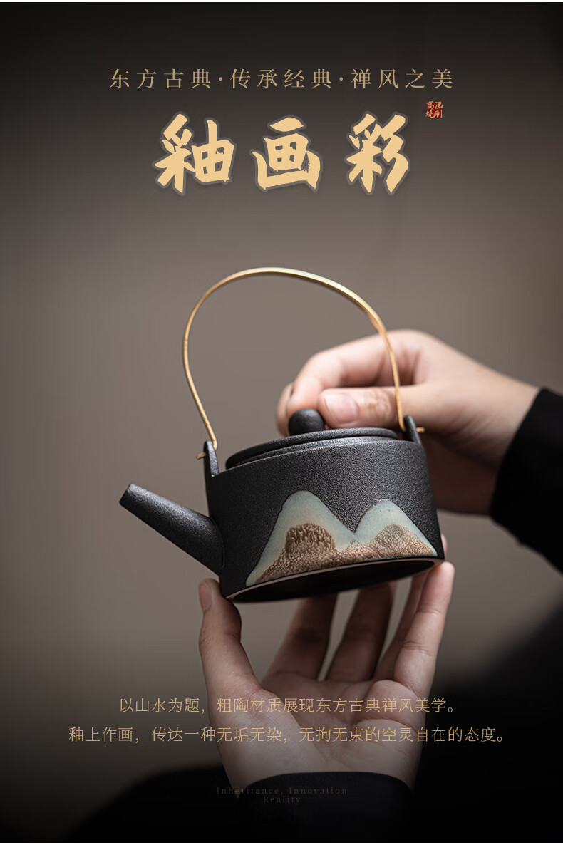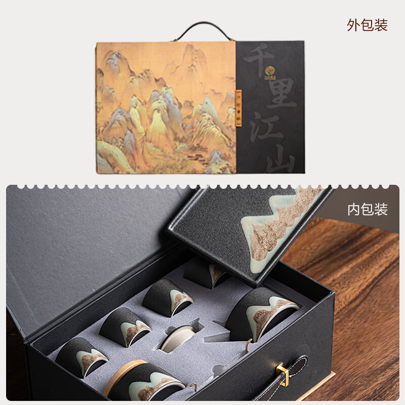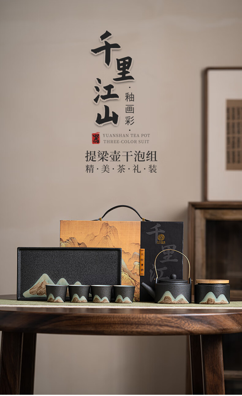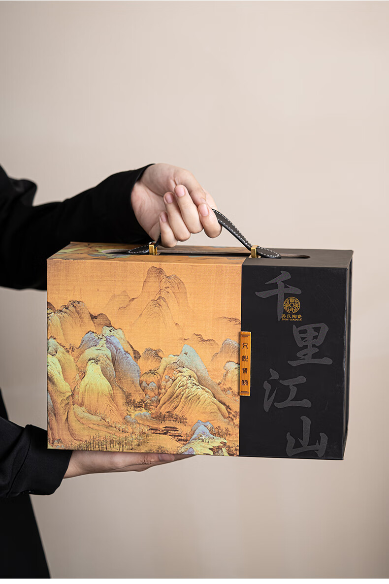 厨具  > 茶具  > 整套茶具  >  苏氏陶瓷 苏氏/SUSHI CERAMICS  >  苏氏陶瓷新年礼物手绘彩画功夫茶具提梁茶壶配干泡茶盘茶罐7件套节日礼盒 提梁茶壶茶具/套