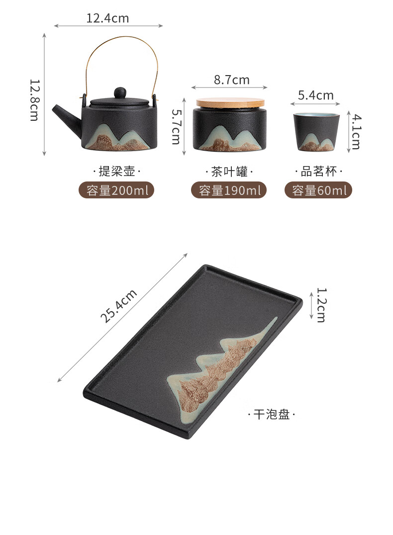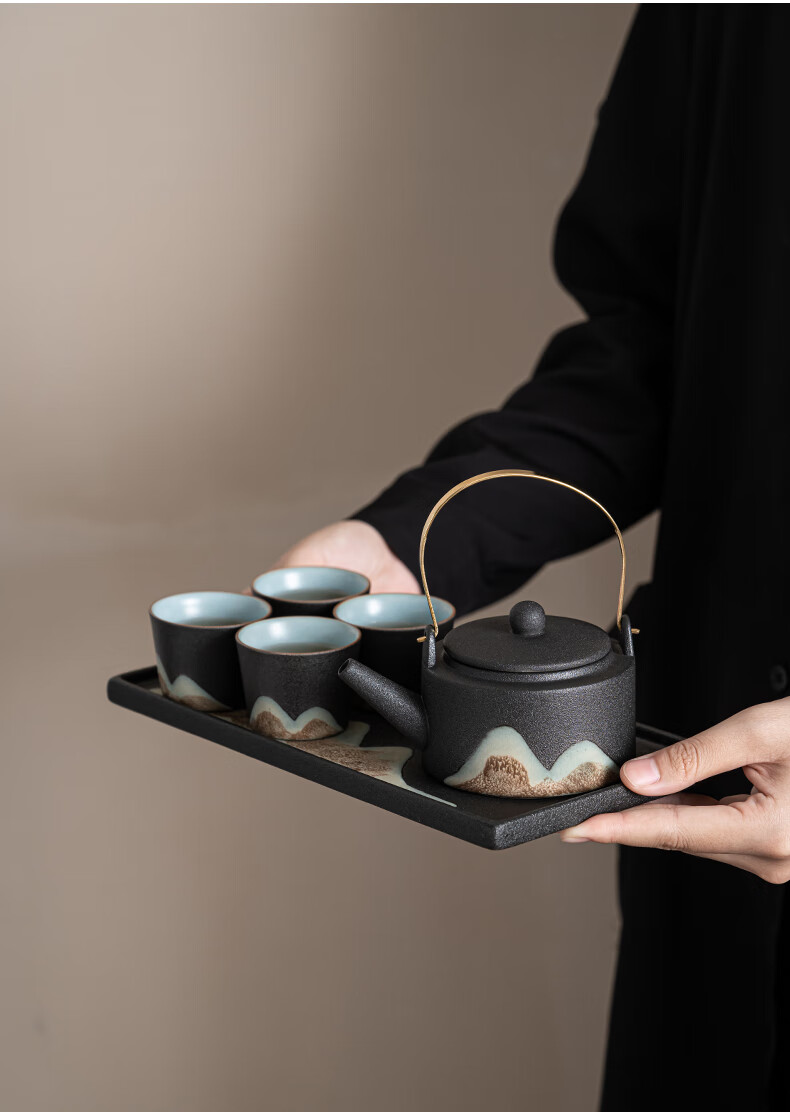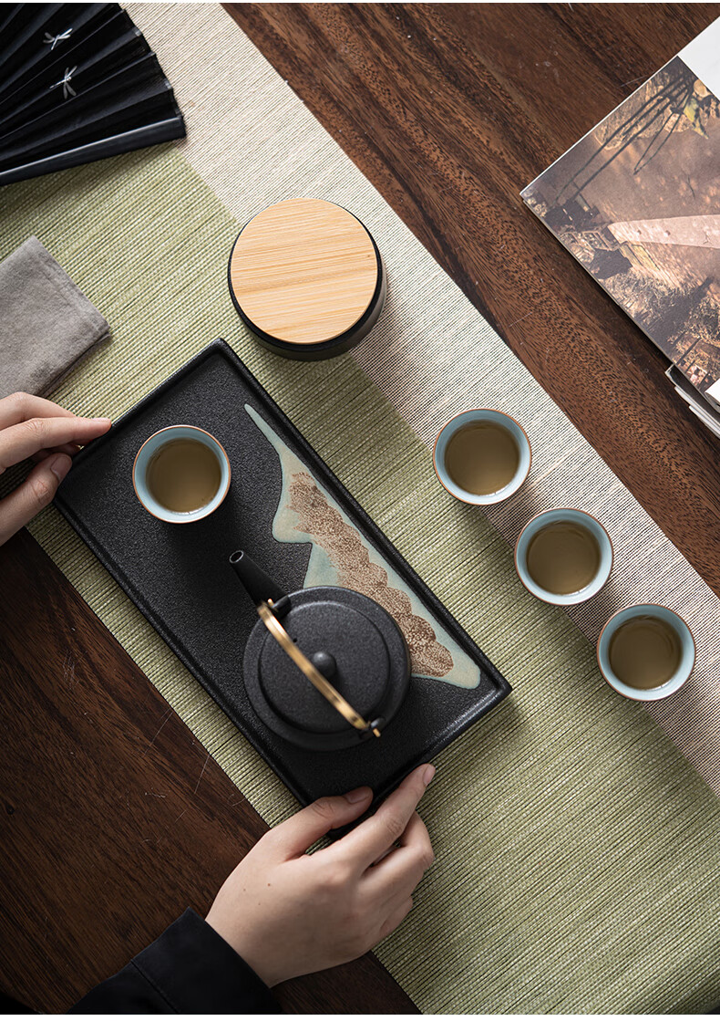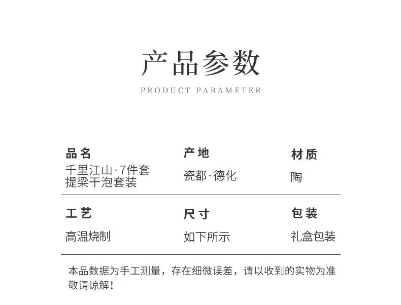 • 商品名称:苏氏陶瓷新年礼物手绘彩画功夫茶具提梁茶壶配干泡茶盘茶罐7件套节日礼盒 提梁茶壶茶具/套