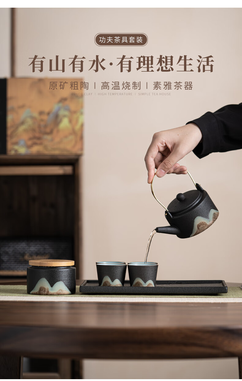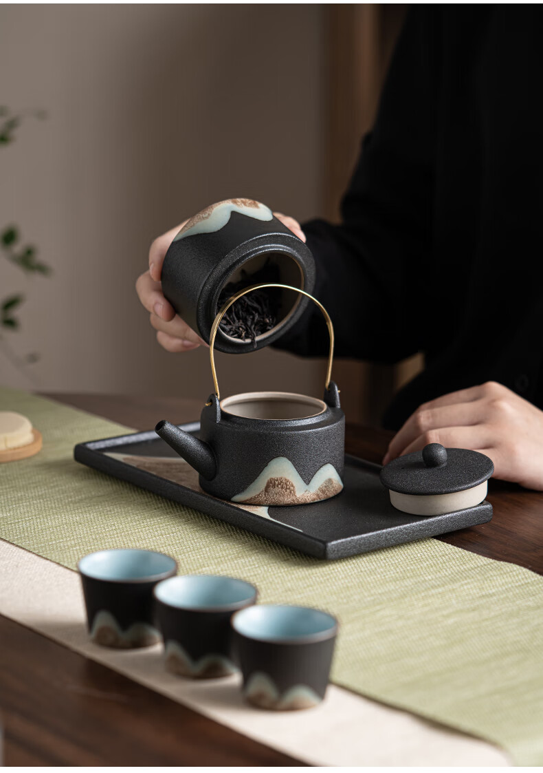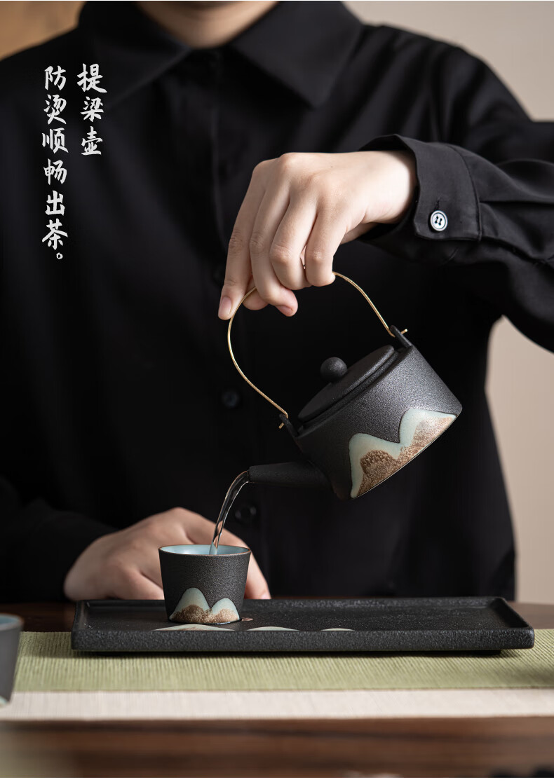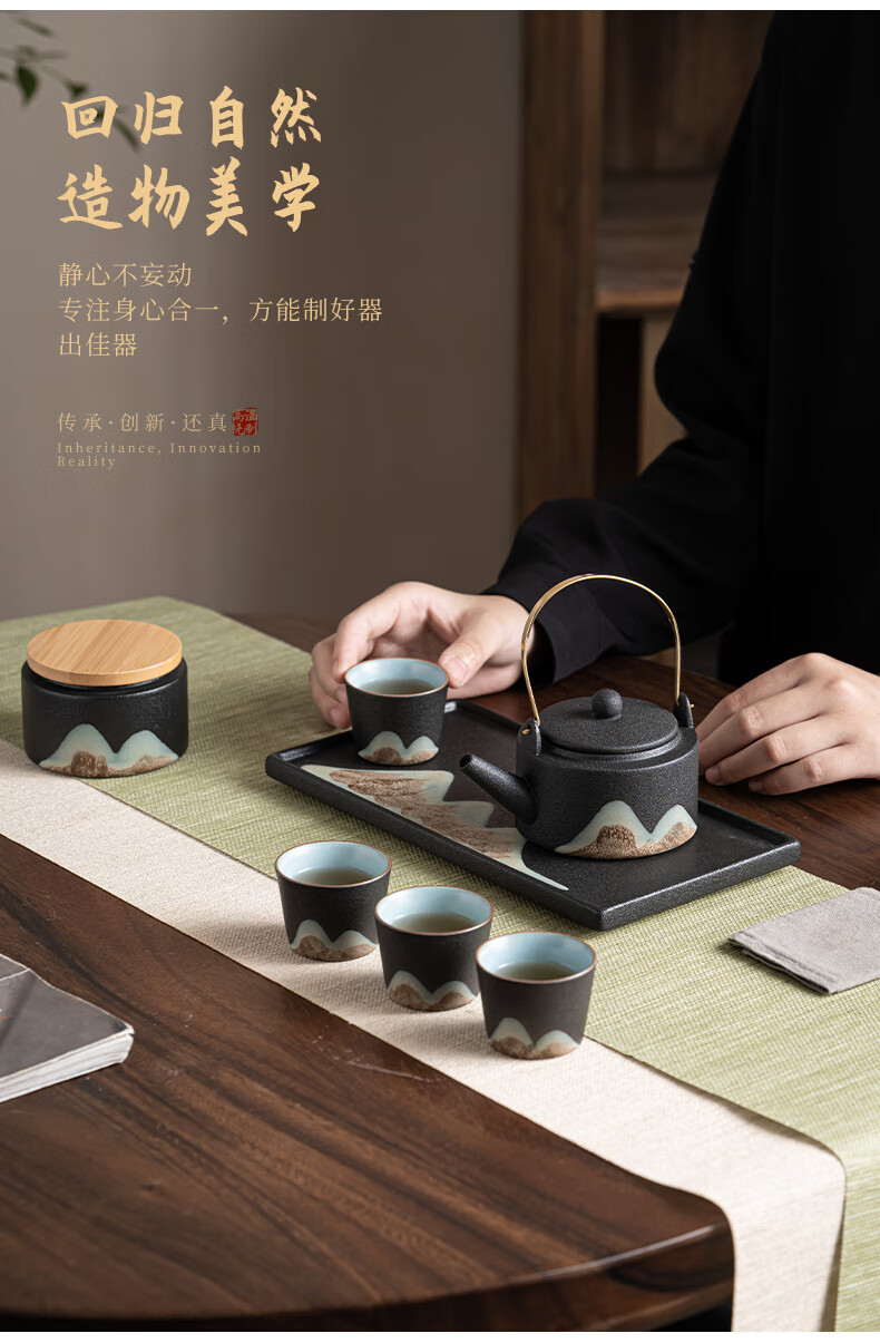 • 商品名称:苏氏陶瓷新年礼物手绘彩画功夫茶具提梁茶壶配干泡茶盘茶罐7件套节日礼盒 提梁茶壶茶具/套