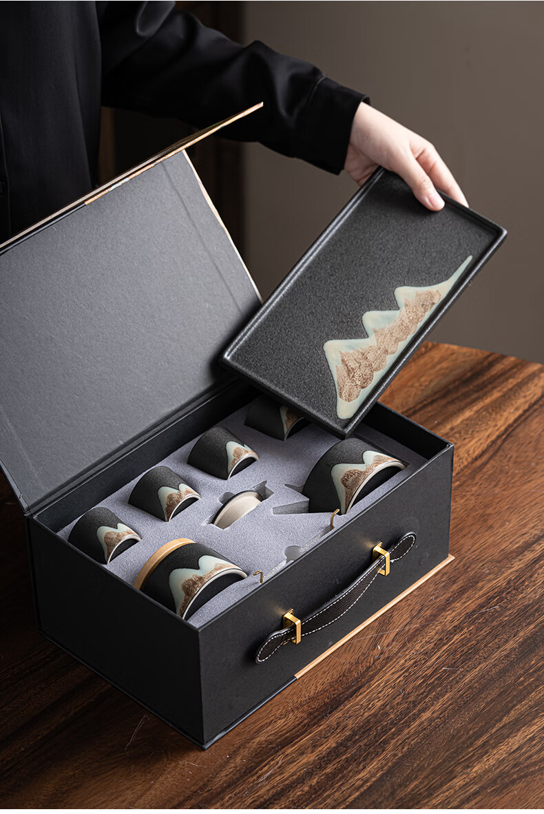 苏氏陶瓷新年礼物手绘彩画功夫茶具提梁茶壶配干泡茶盘茶罐7件套节日礼盒 提梁茶壶茶具/套