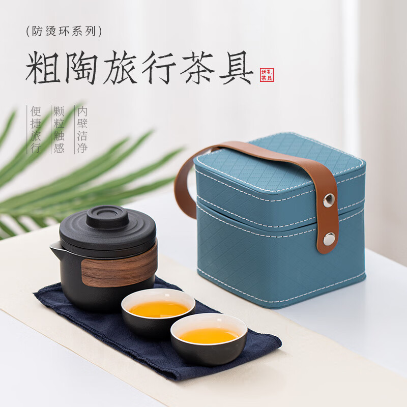 御礼伴手礼商务年会礼品旅行茶具整套装新年送长辈客户员工周年庆定制 粗陶旅行茶具整套/套