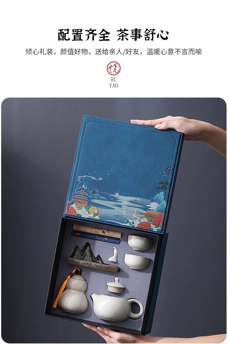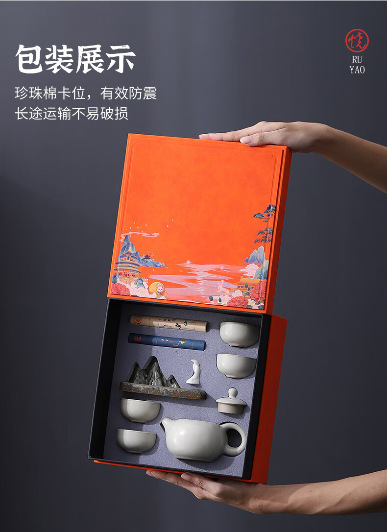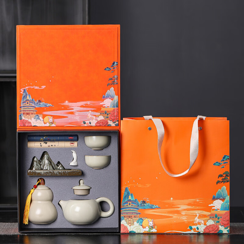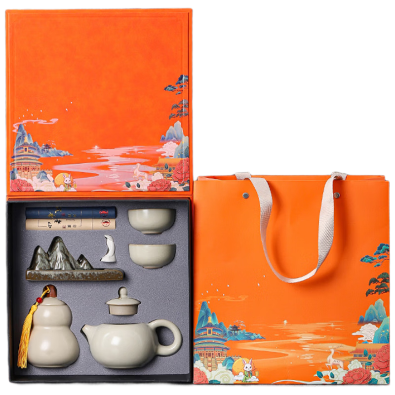 • 商品名称:御礼茶具整套装年会礼品新年伴手礼生日礼物男士老师老外客户员工定制 汝窑香道套装橙色礼盒/套
