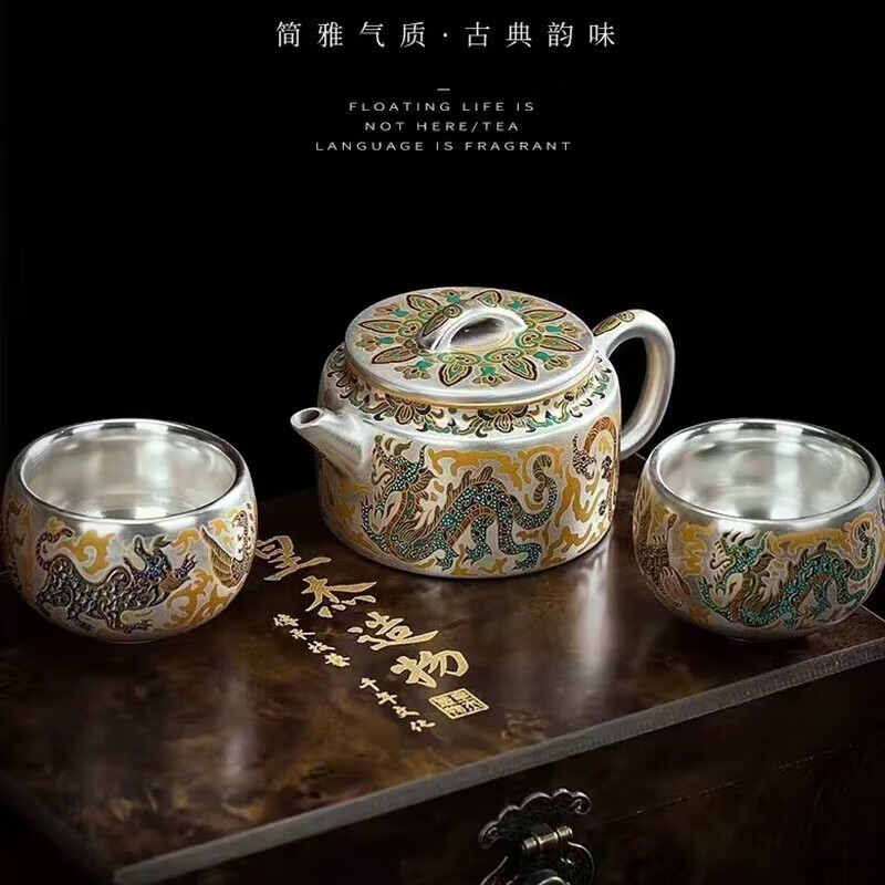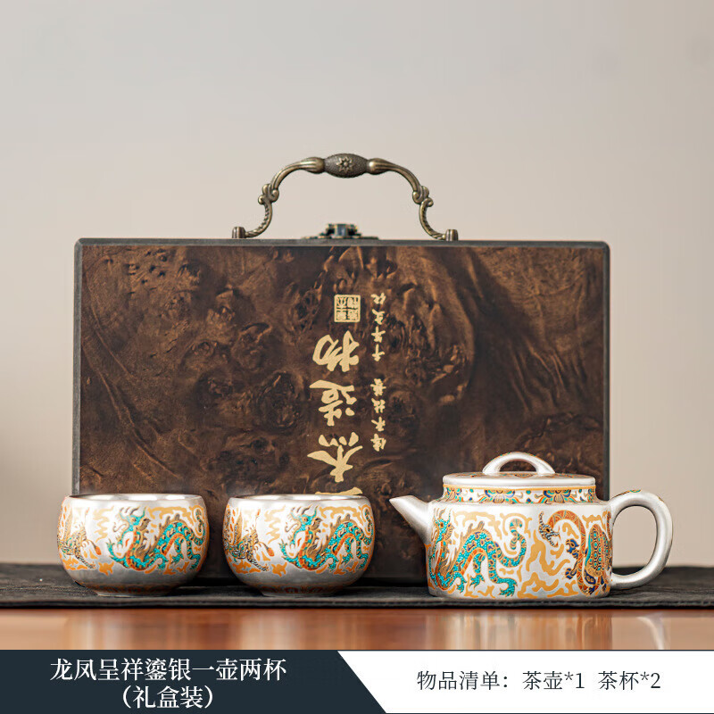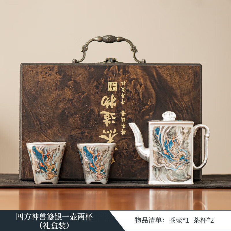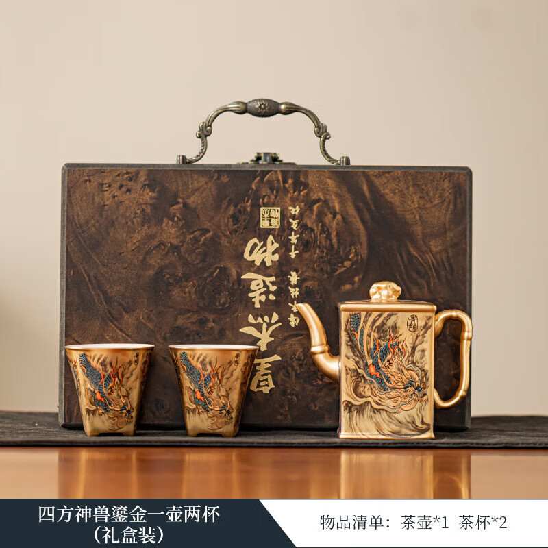 • 商品名称:茶循 鎏银茶具套装结婚礼物送长辈 四方神兽鎏金一壶两杯——礼盒包装 主产品/件