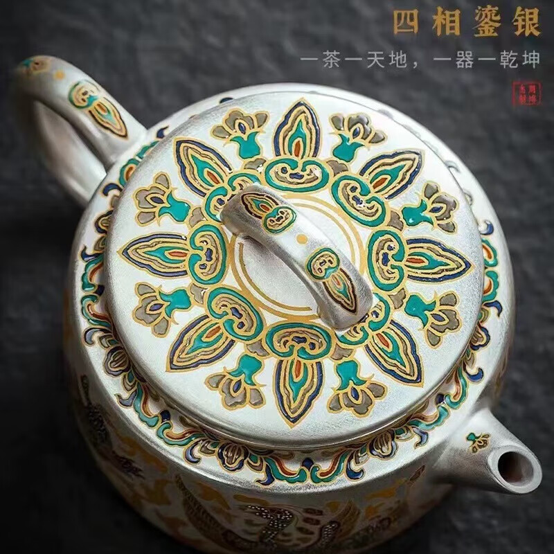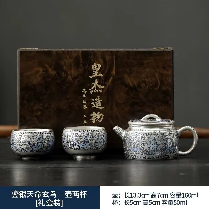 茶循 鎏银茶具套装结婚礼物送长辈 四方神兽鎏金一壶两杯——礼盒包装 主产品/件