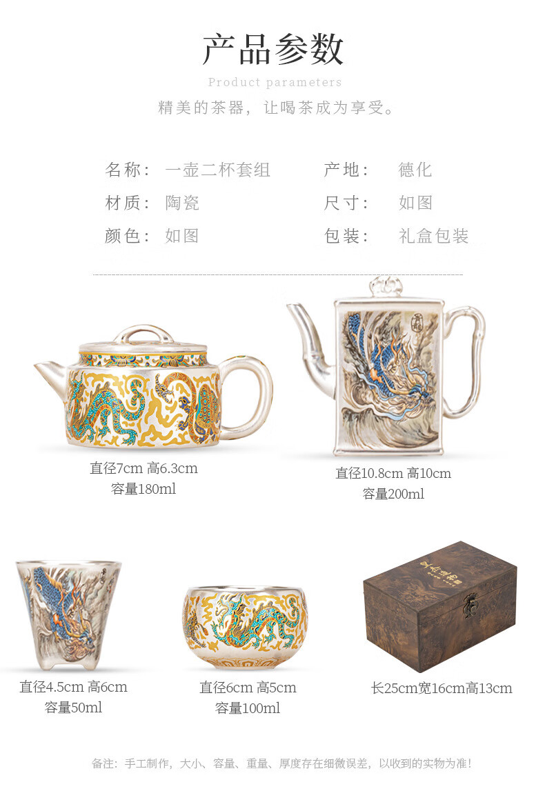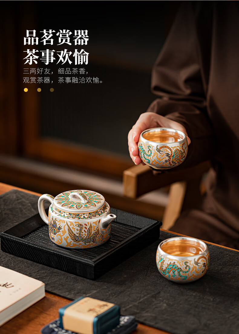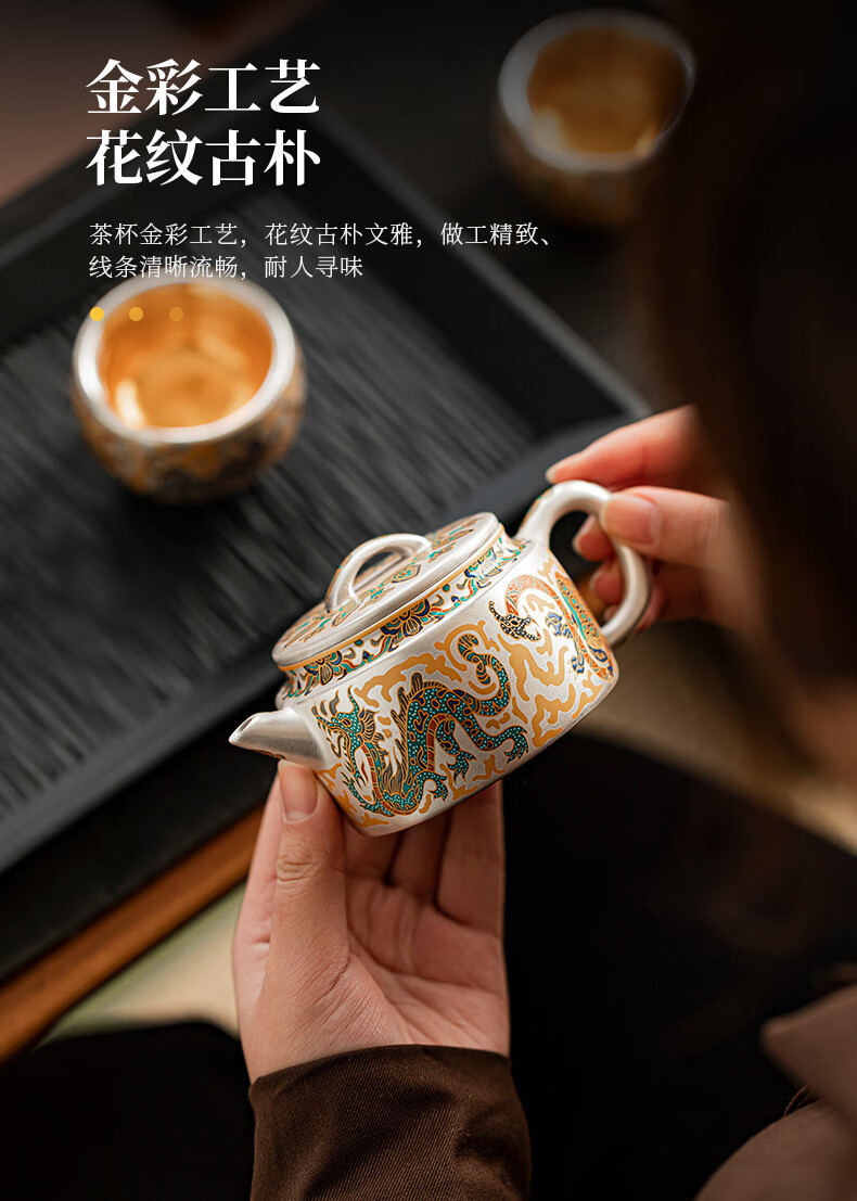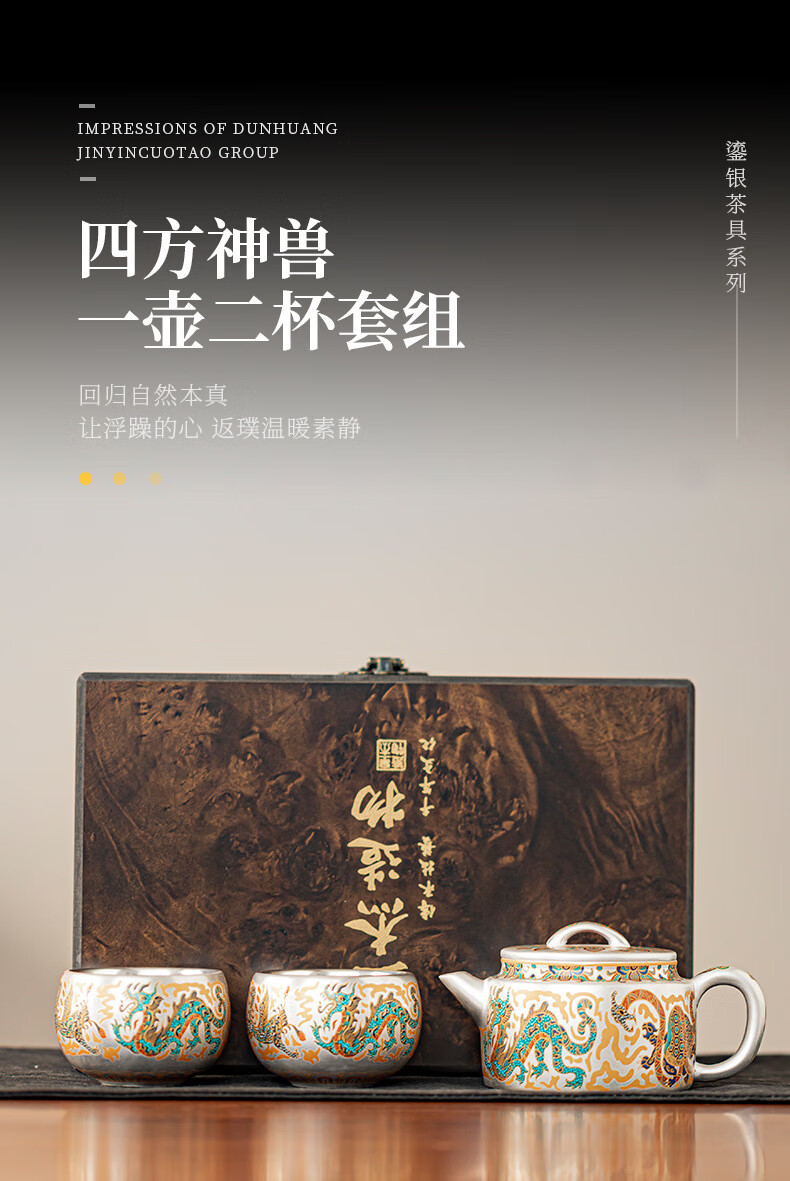 商品名称: 茶循 鎏银茶具套装结婚礼物送长辈 四方神兽鎏金一壶两杯——礼盒包装 主产品/件