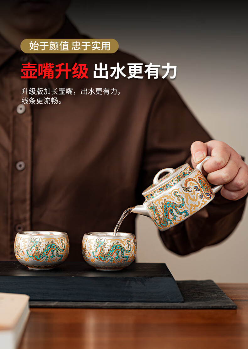 厨具  > 茶具  > 整套茶具  >  茶循  >  茶循 鎏银茶具套装结婚礼物送长辈 四方神兽鎏金一壶两杯——礼盒包装 主产品/件