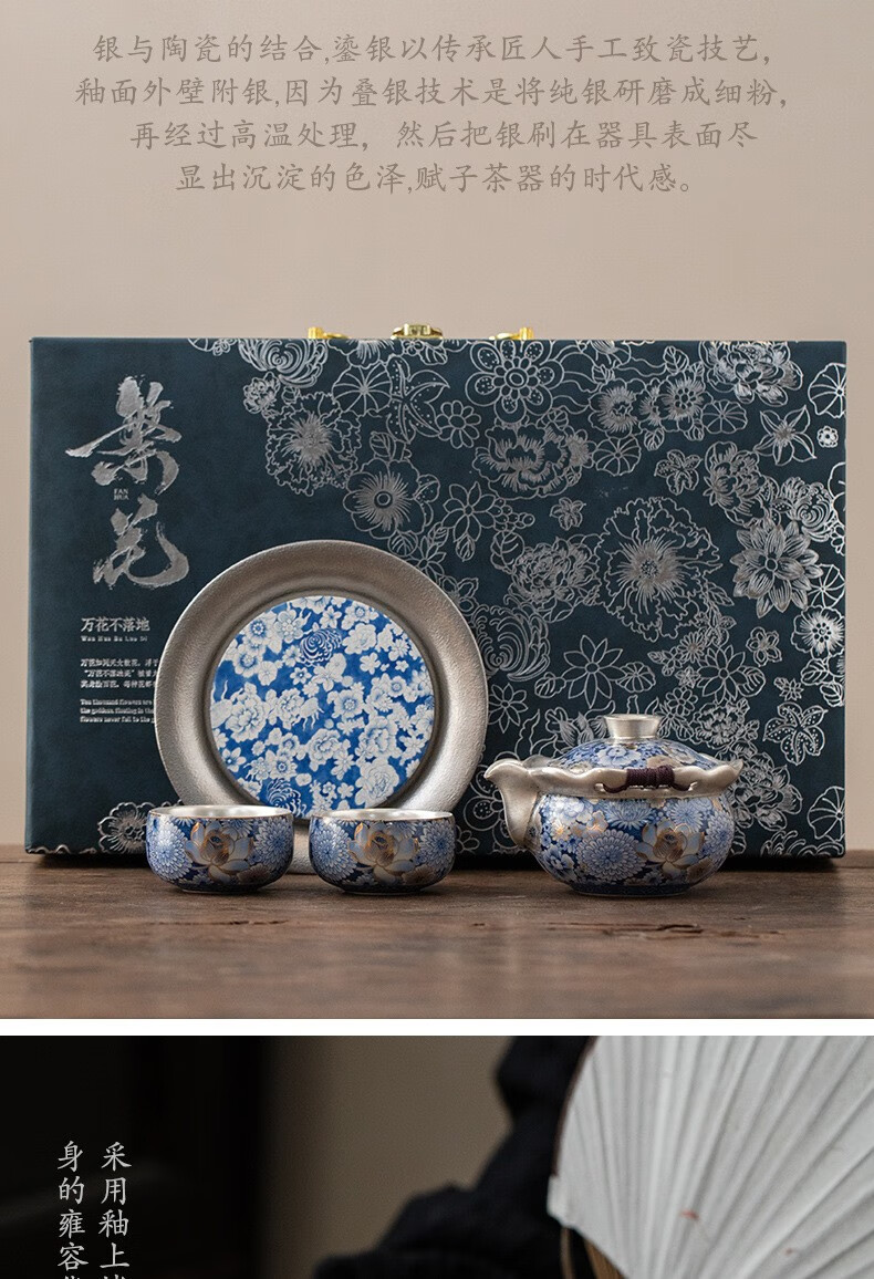 • 商品名称:满庭花年会礼品鎏银高档茶具整套装伴手礼男女退休纪念品礼物LOGO定制 08541/套