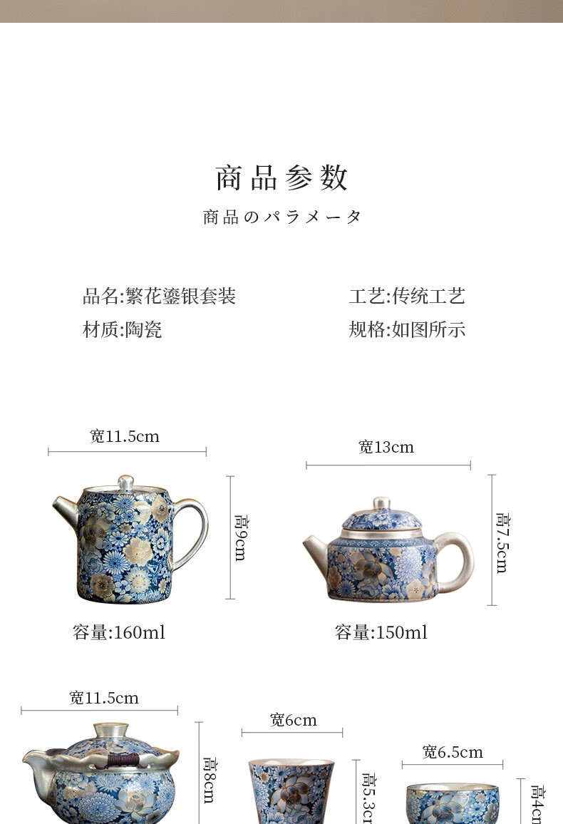 包装清单: 鎏银高档茶具套装