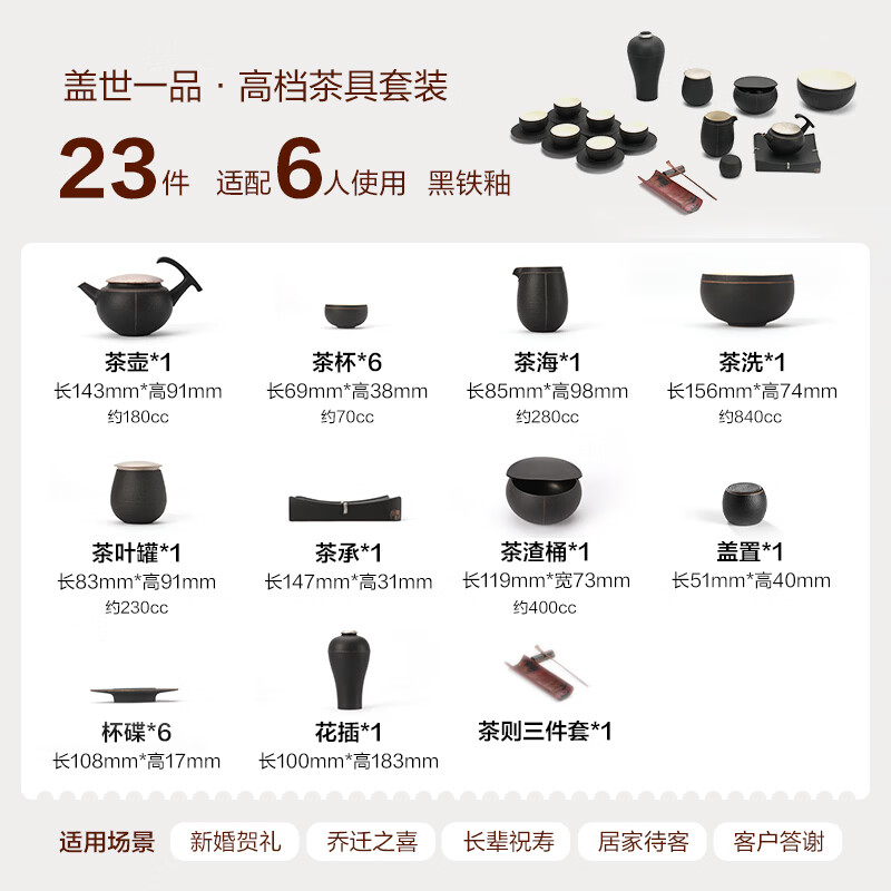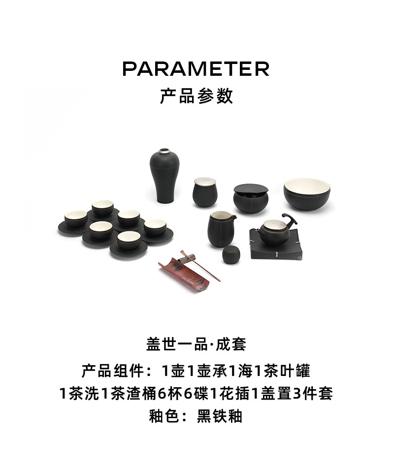 商品名称: 万仟堂陶瓷功夫茶具高档礼盒套装 盖世一品 整套茶壶茶海茶杯 黑铁釉 整套茶具/箱