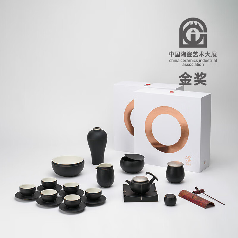万仟堂陶瓷功夫茶具高档礼盒套装 盖世一品 整套茶壶茶海茶杯 黑铁釉 整套茶具/箱