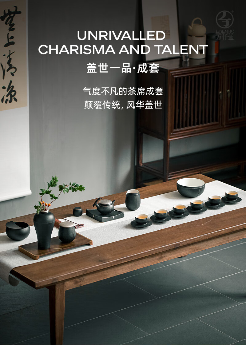 厨具  > 茶具  > 整套茶具  >  万仟堂/Edenus  >  万仟堂陶瓷功夫茶具高档礼盒套装 盖世一品 整套茶壶茶海茶杯 黑铁釉 整套茶具/箱