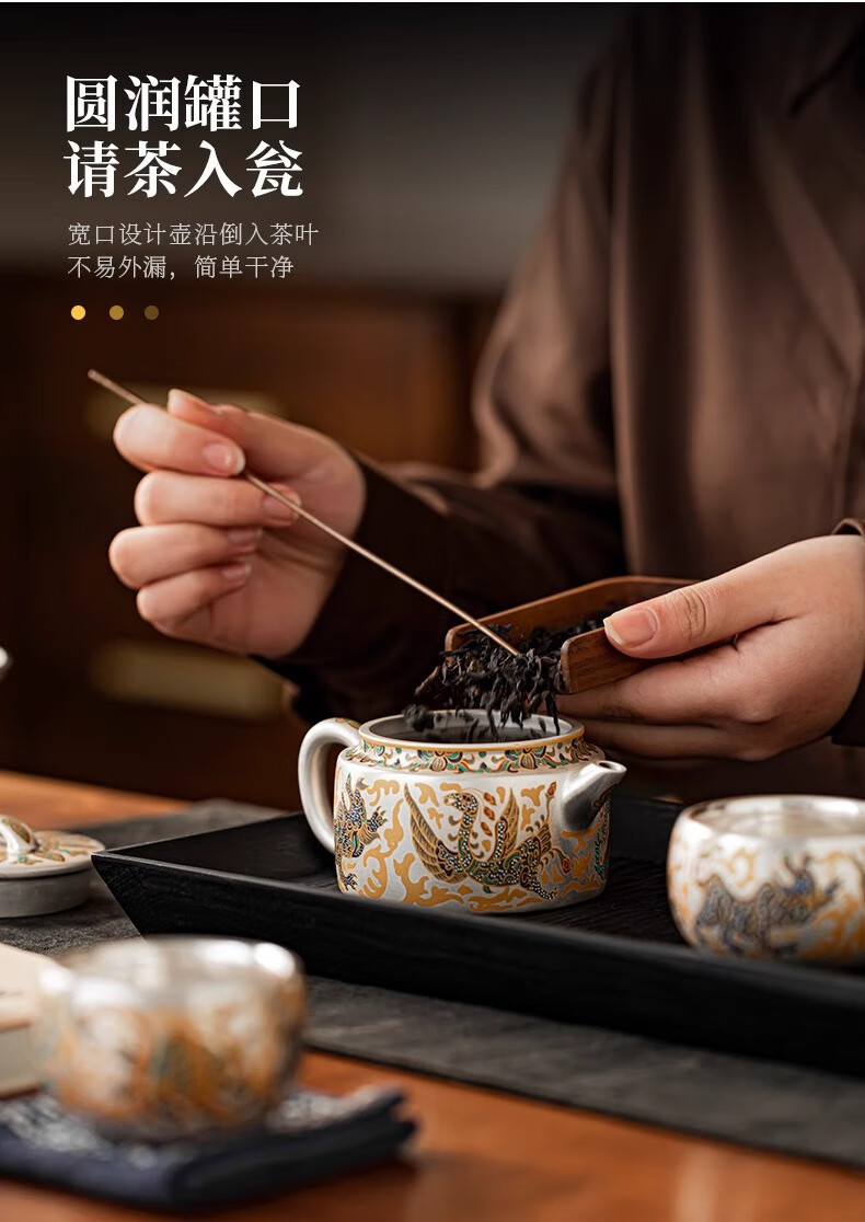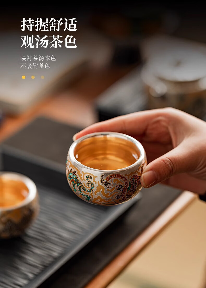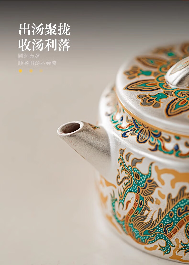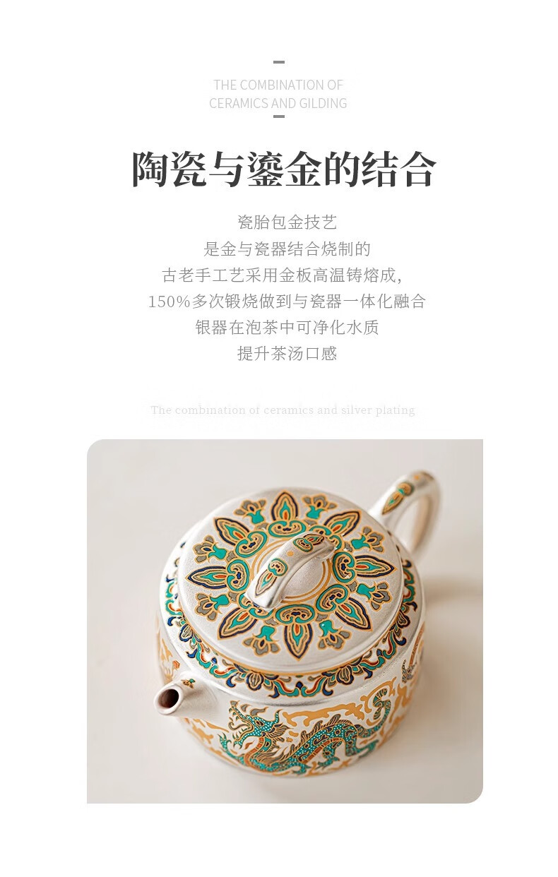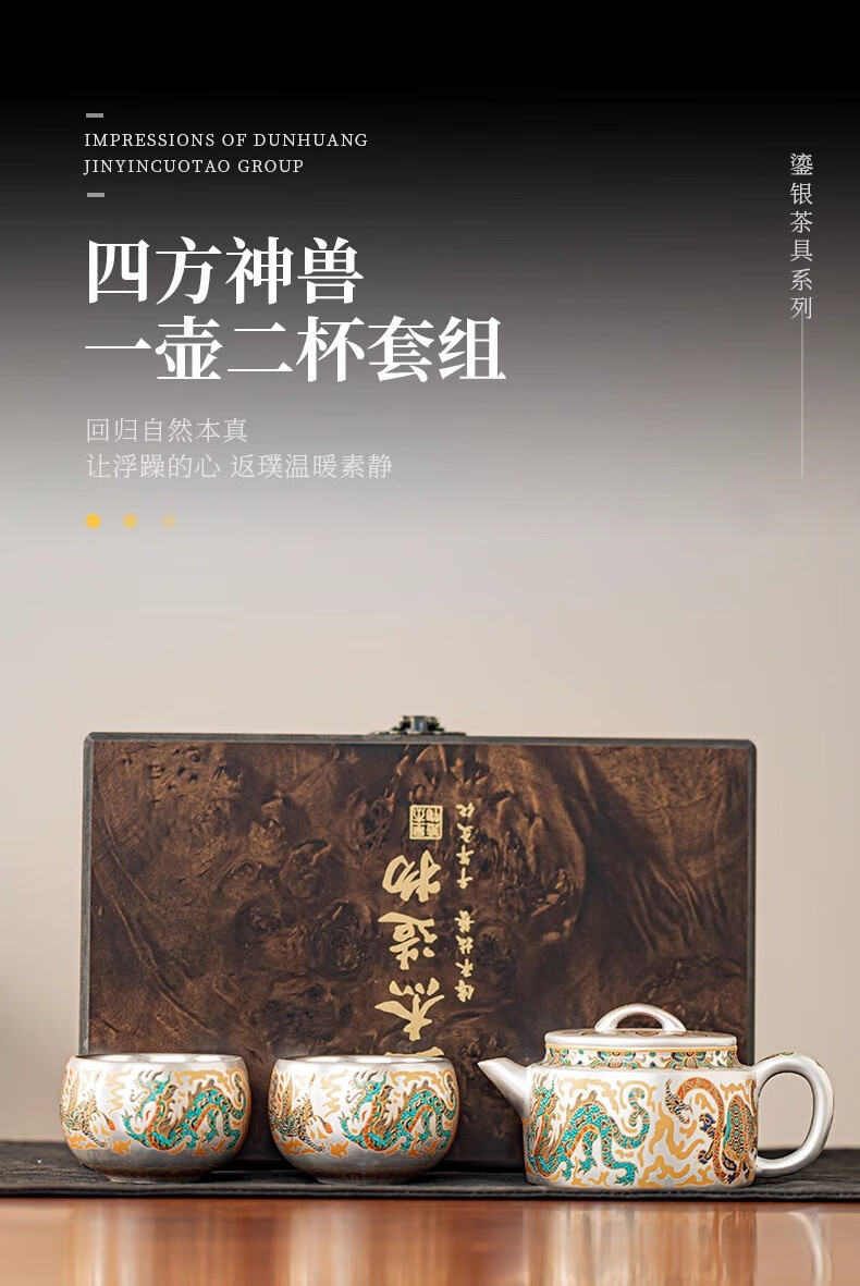 茶循 陈德生敦煌银壶高档 龙腾四海鎏银茶壶四件套——礼盒包装 主产品/件