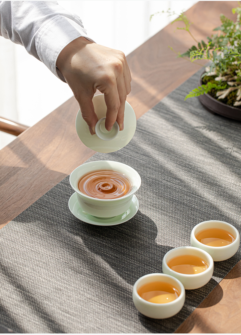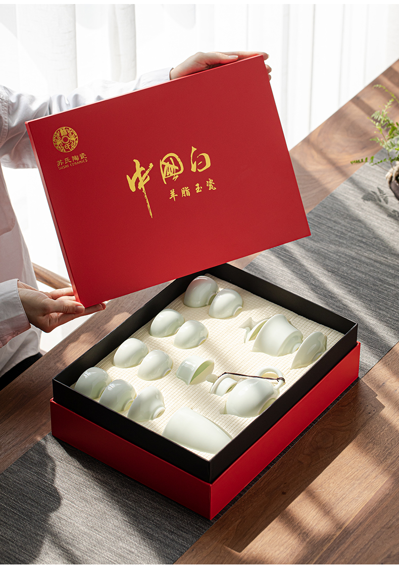 苏氏陶瓷新年礼物翡翠玉功夫茶具套装羊脂玉陶瓷盖碗青瓷茶壶组节日礼盒装 整套茶具/套