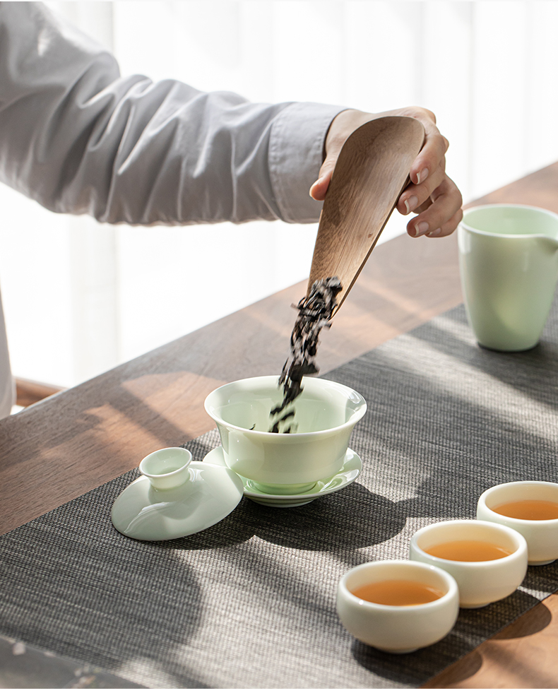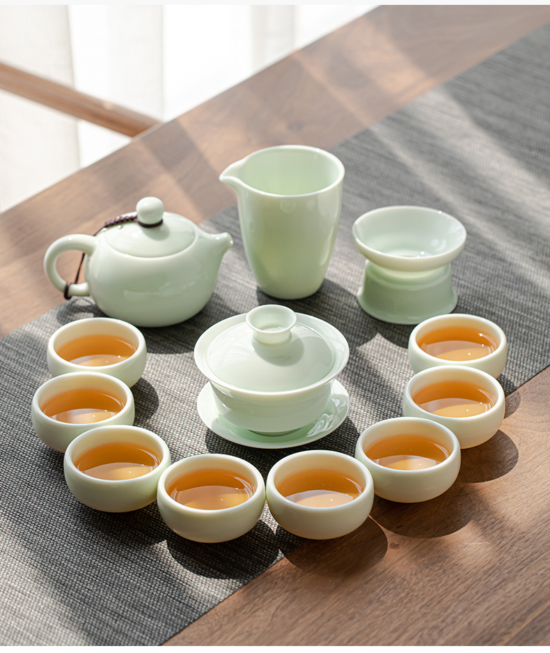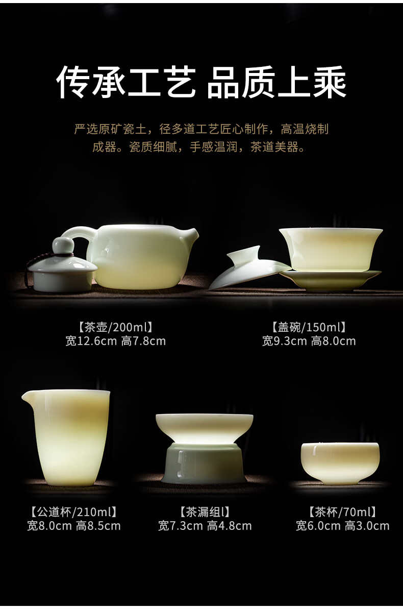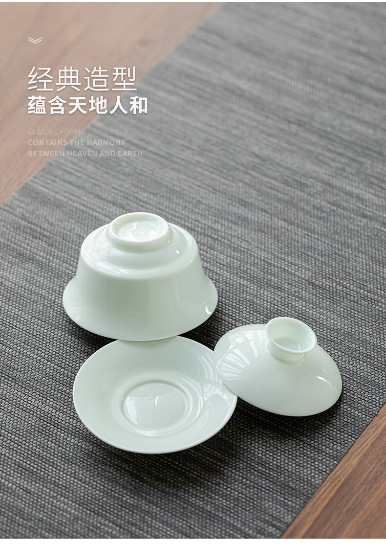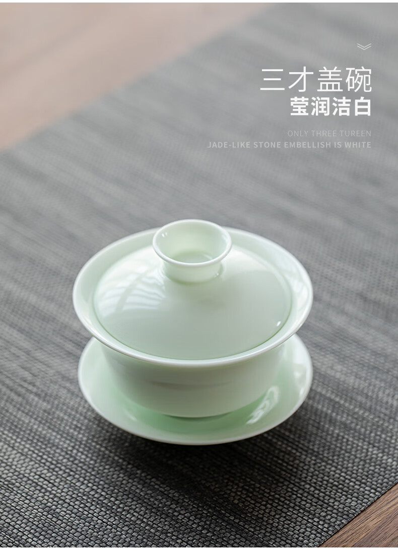 商品名称: 苏氏陶瓷新年礼物翡翠玉功夫茶具套装羊脂玉陶瓷盖碗青瓷茶壶组节日礼盒装 整套茶具/套