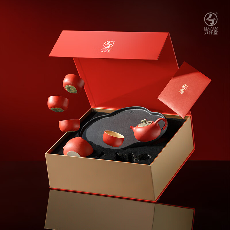 厨具  > 茶具  > 整套茶具  >  万仟堂/Edenus  >  万仟堂【新年礼物】茶具套装礼盒陶瓷水果茶具柿子茶壶茶盘茶杯事事如意 功夫茶具套装/套