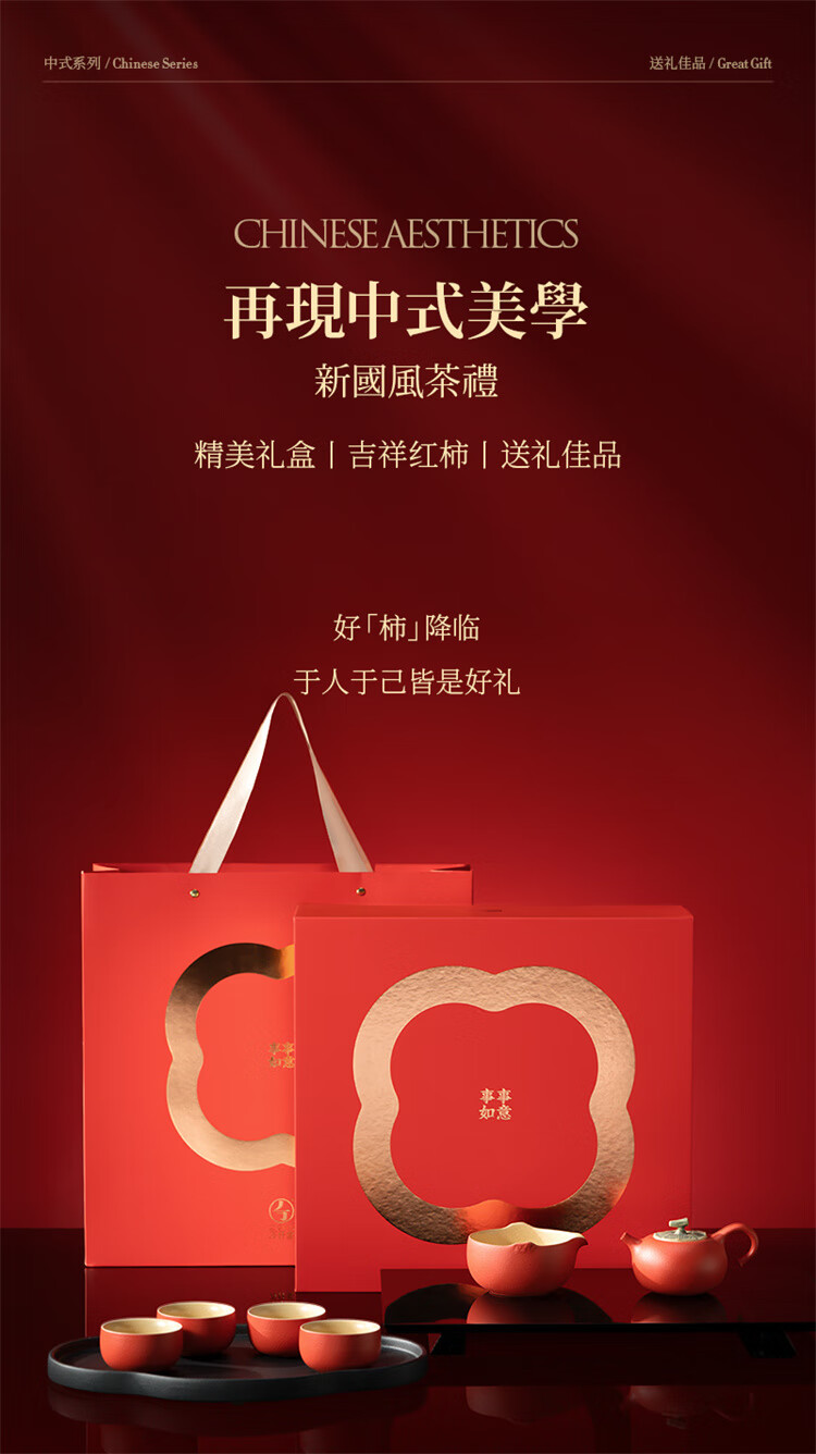 • 商品名称:万仟堂【新年礼物】茶具套装礼盒陶瓷水果茶具柿子茶壶茶盘茶杯事事如意 功夫茶具套装/套