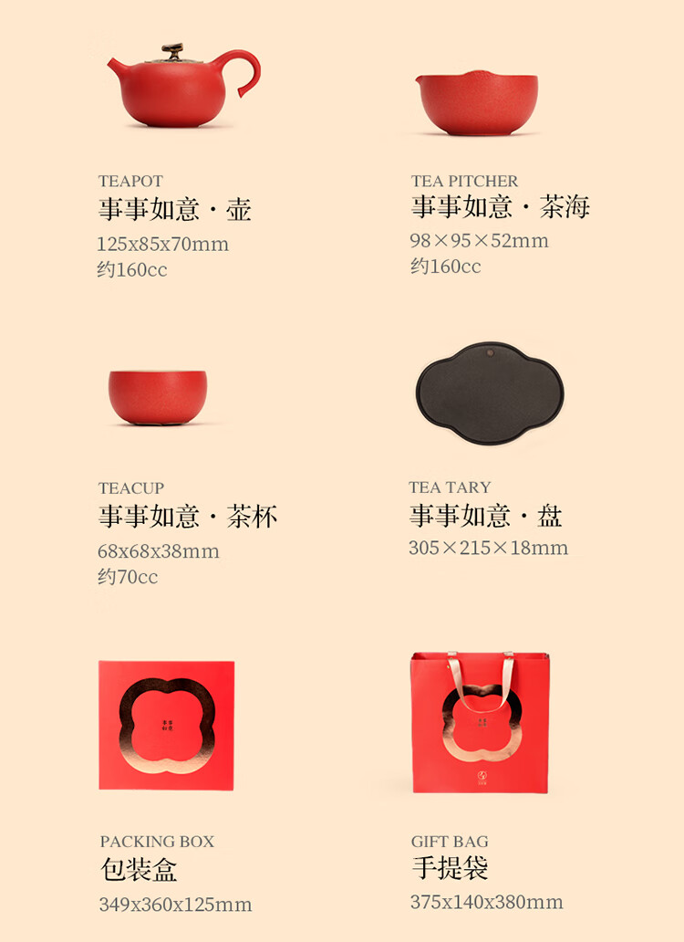 包装清单: 礼盒装,茶壶X1、茶海X1、茶杯X4、茶盘X1