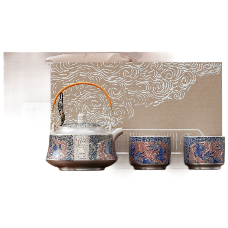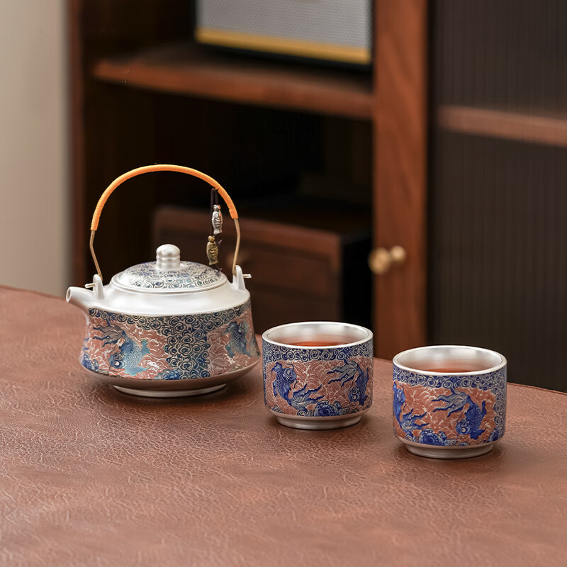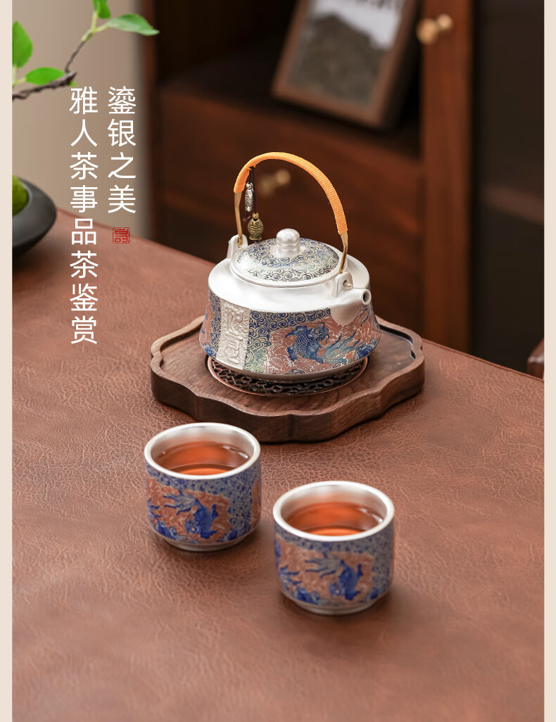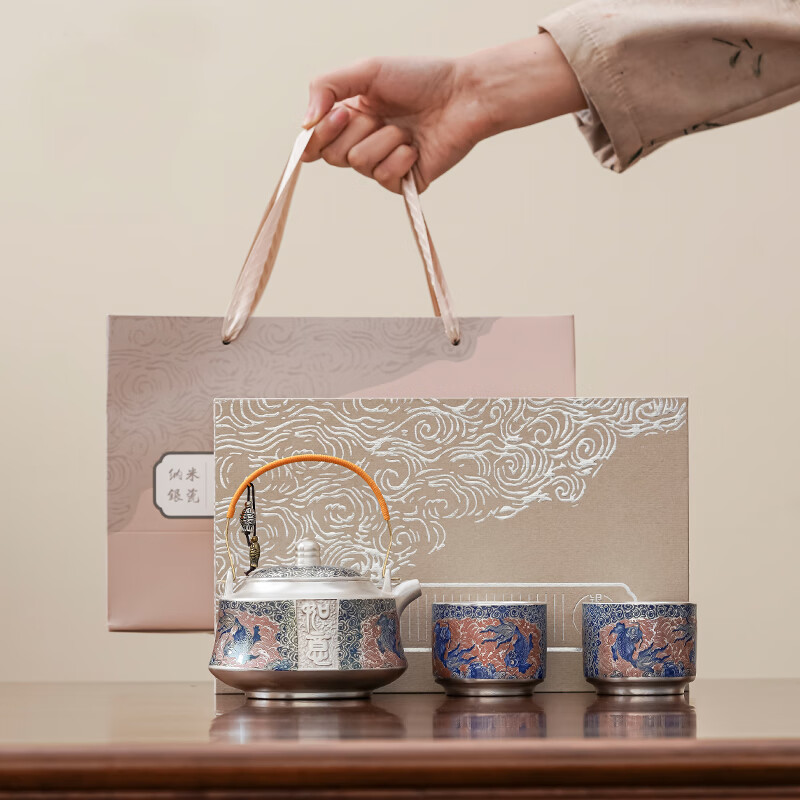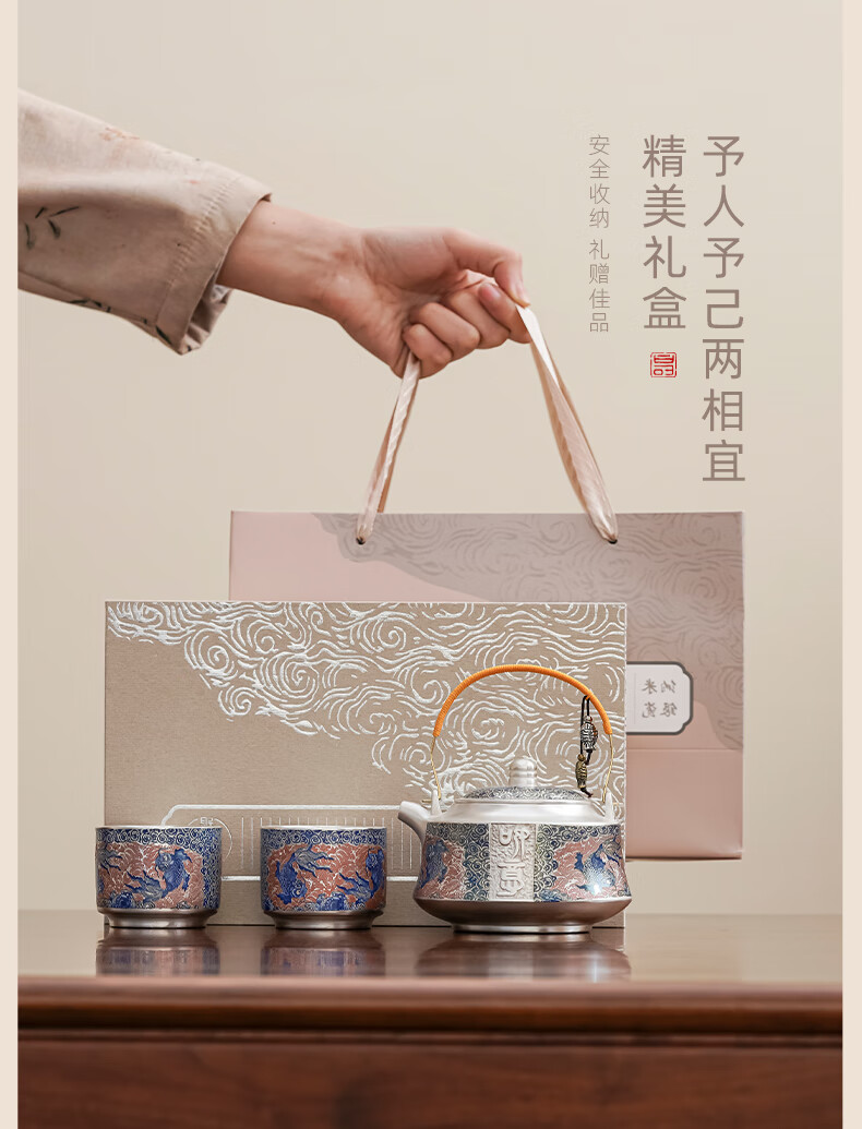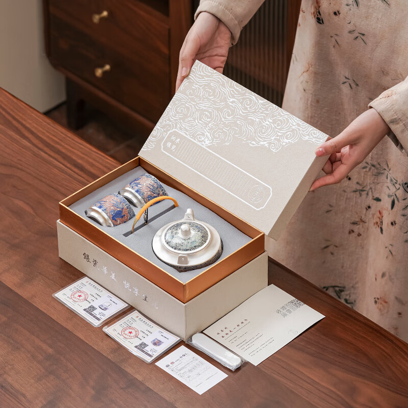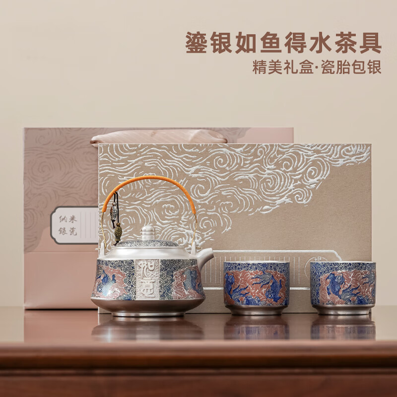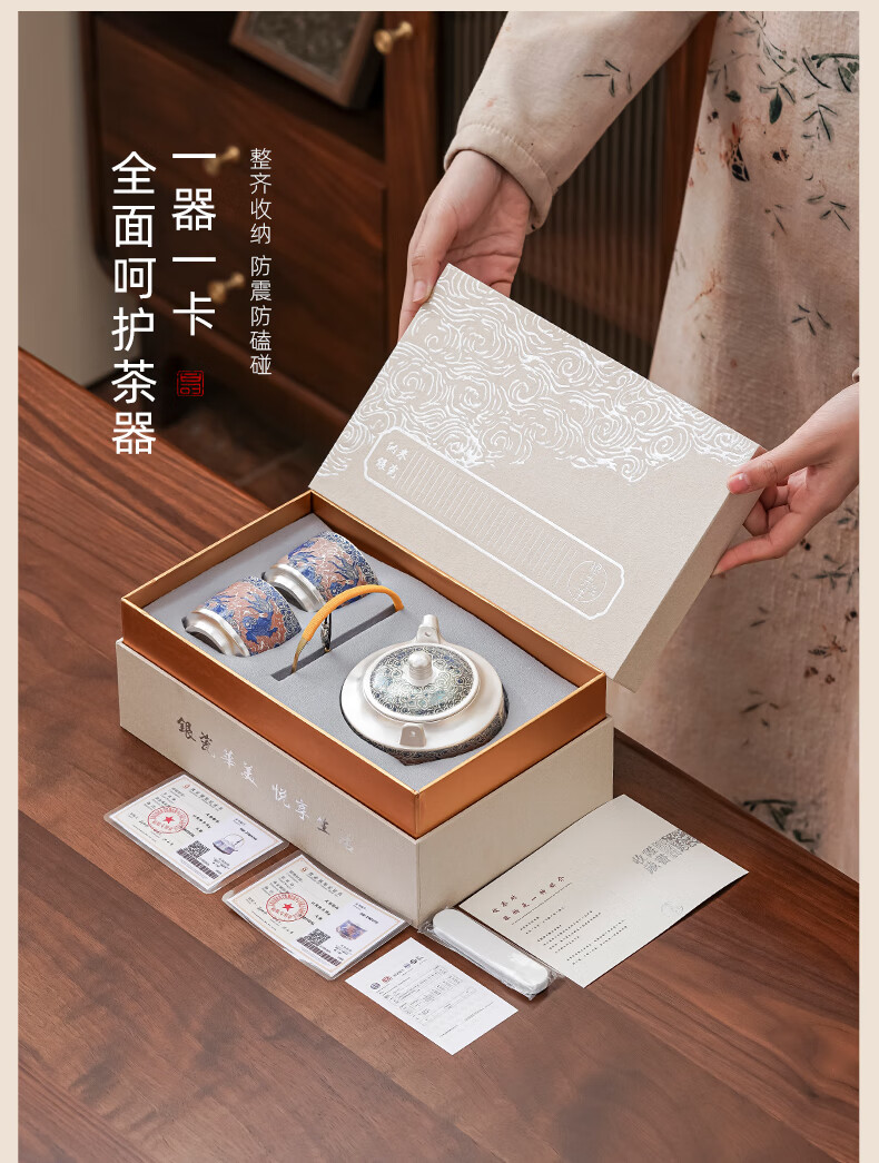 • 商品名称:御礼鎏银茶具套装整套高档伴手礼年会礼品退休生日礼物送客户长辈定制 如鱼得水鎏银茶具套装/套