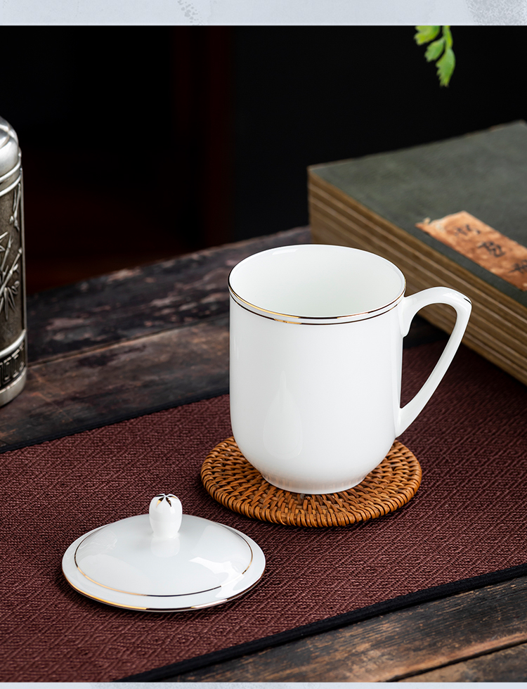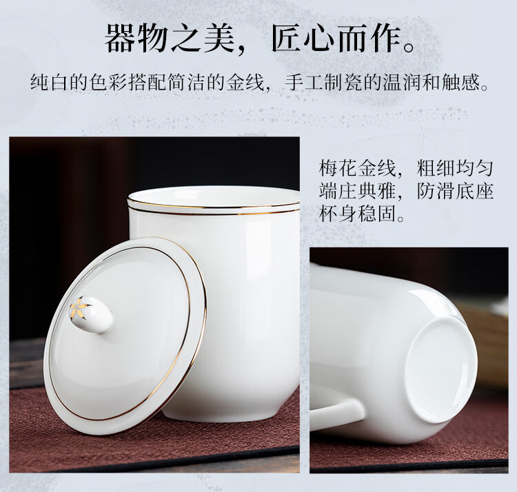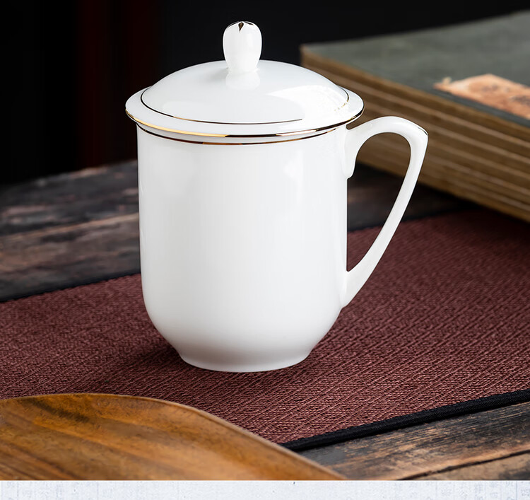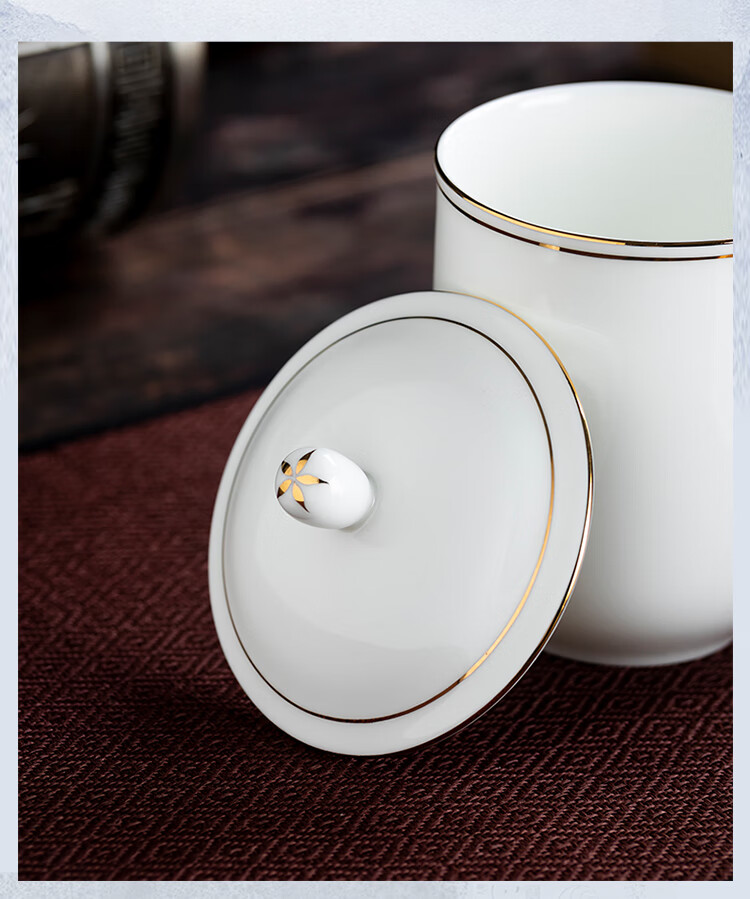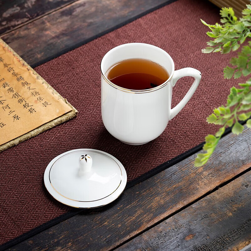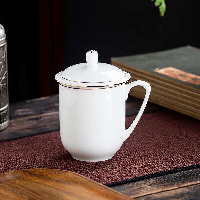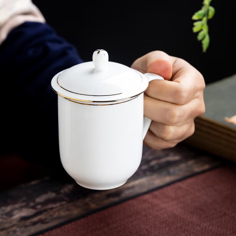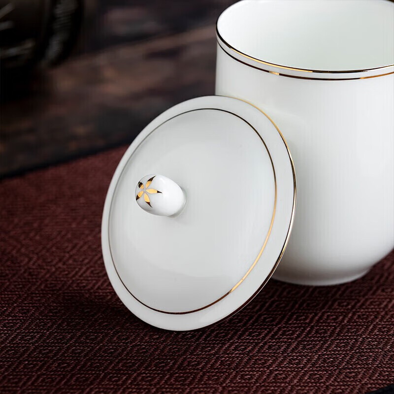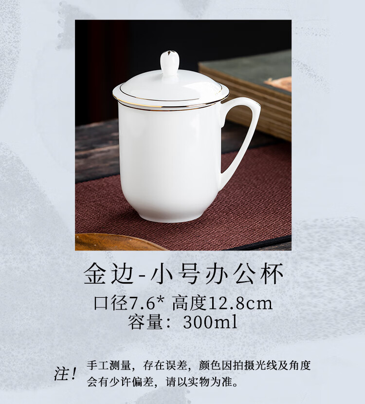 • 商品名称:陶相惠茶杯陶瓷带盖会议杯子骨瓷开会茶杯小号办公水杯10只套装300ml 金边小号杯子10只装300ml/套