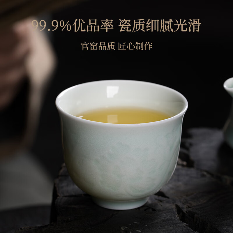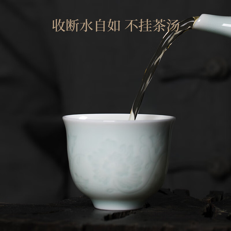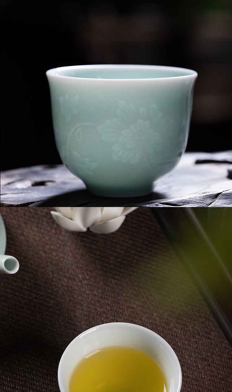 厨具  > 茶具  > 茶杯  >  龙泉半闲堂  >  龙泉半闲堂牡丹天青·月光杯青瓷茶杯中式办公杯带盖家用杯子陶瓷水杯1件 BXT022/件