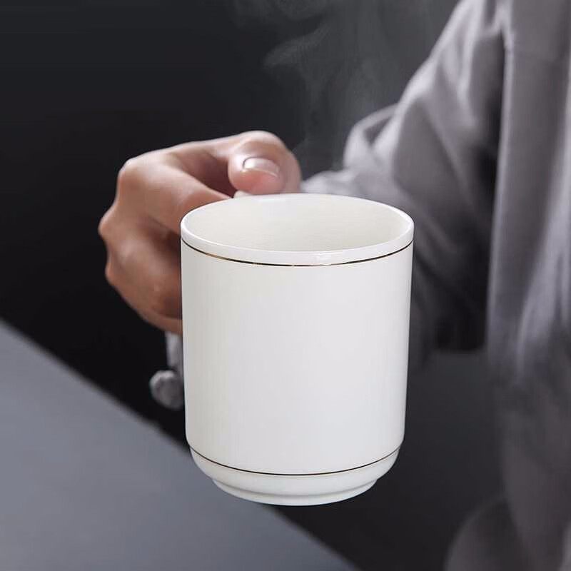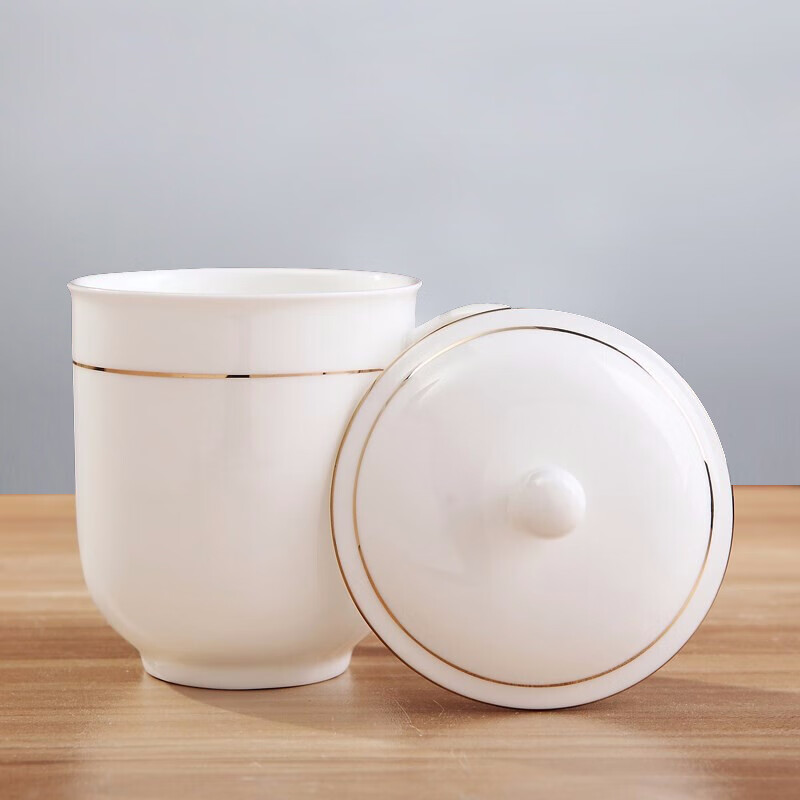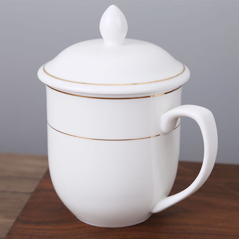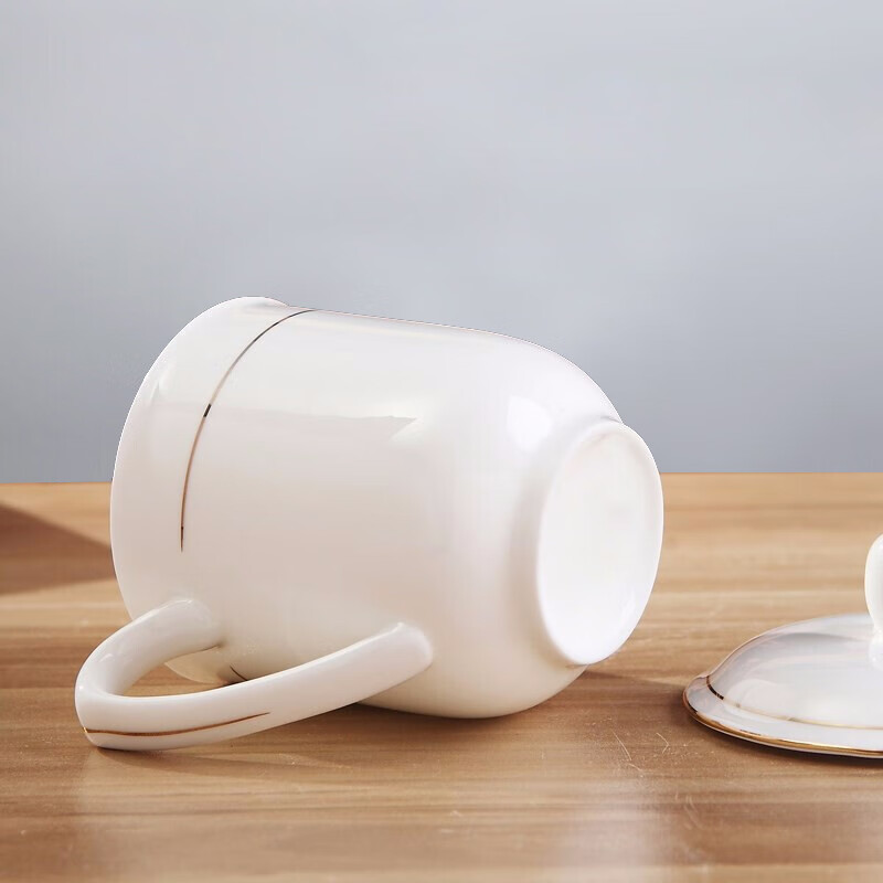 • 商品名称:星墨凡茶杯陶瓷杯子带盖白瓷杯办公室杯定做OGO 金边杯圆头 300ml 300ml/个