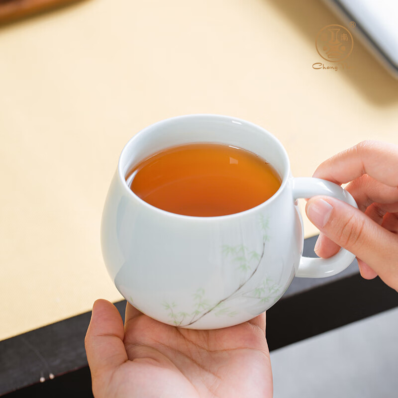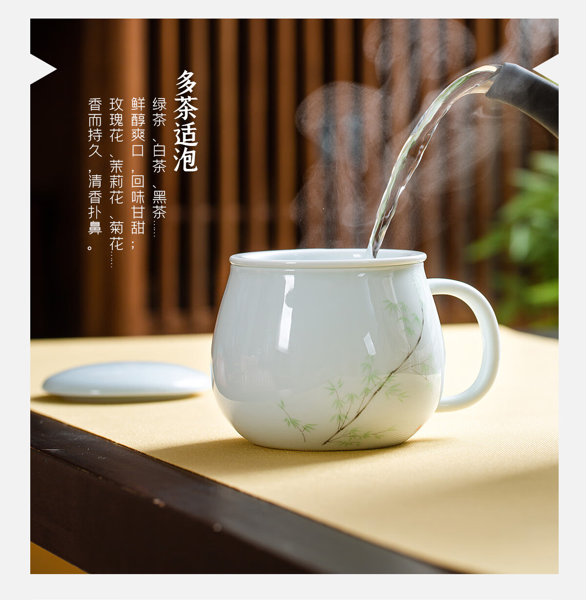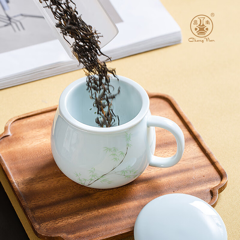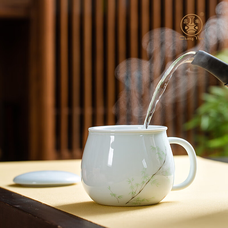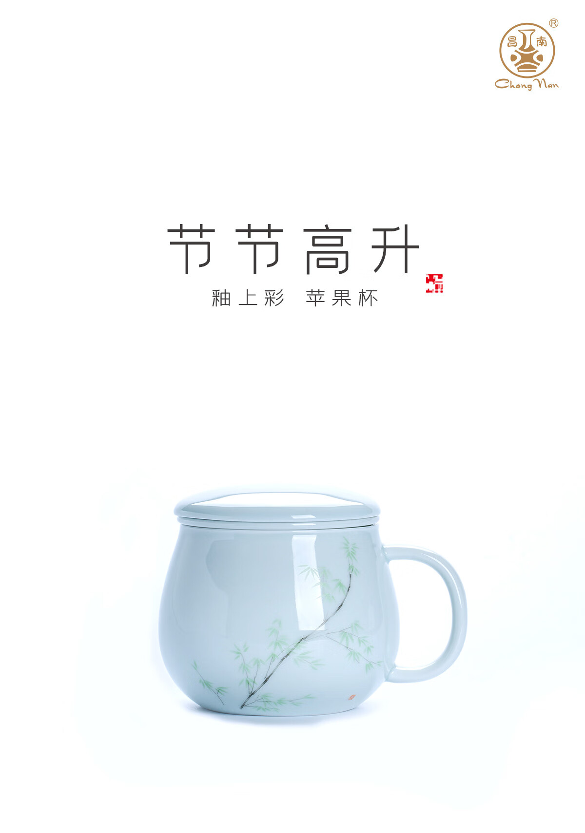 厨具  > 茶具  > 茶杯  >  昌南/changnan  >  昌南茶杯影青陶瓷景德镇茶水分离茶具过滤带盖办公泡茶杯节节高升 茶杯/套