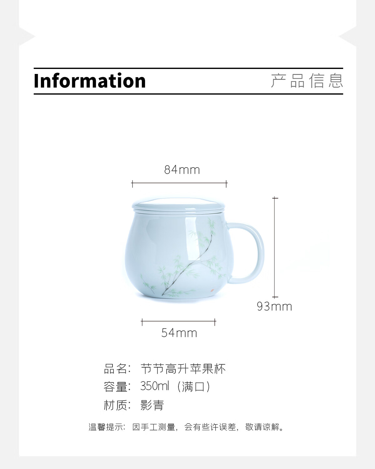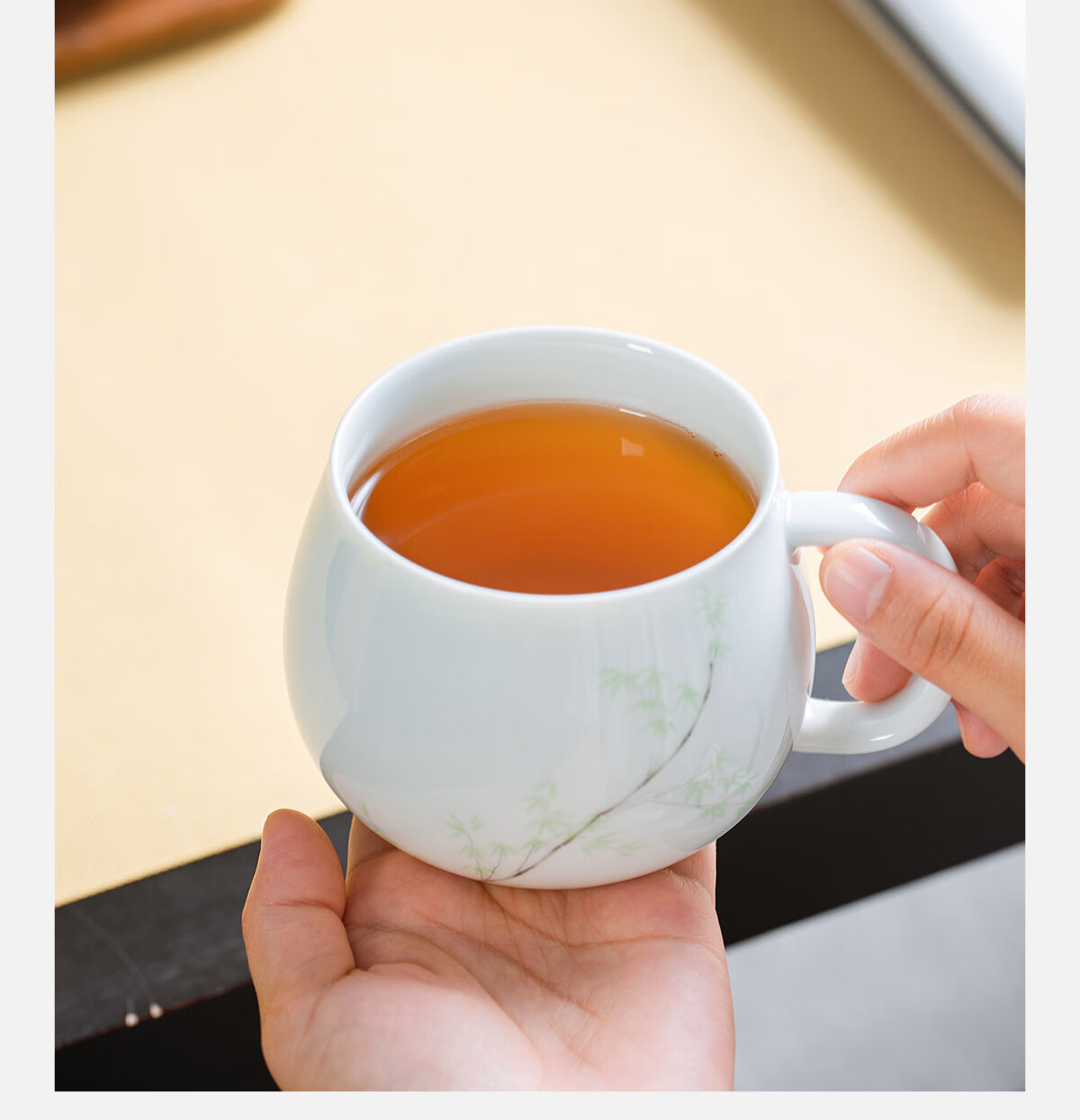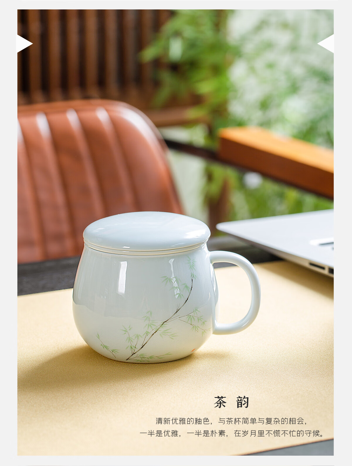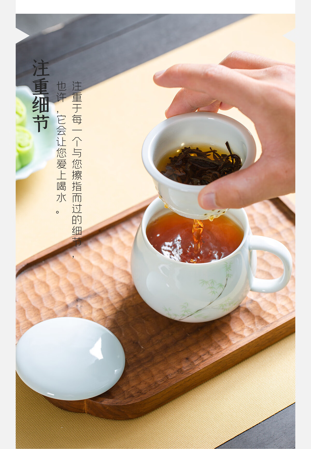 • 商品名称:昌南茶杯影青陶瓷景德镇茶水分离茶具过滤带盖办公泡茶杯节节高升 茶杯/套