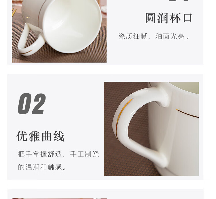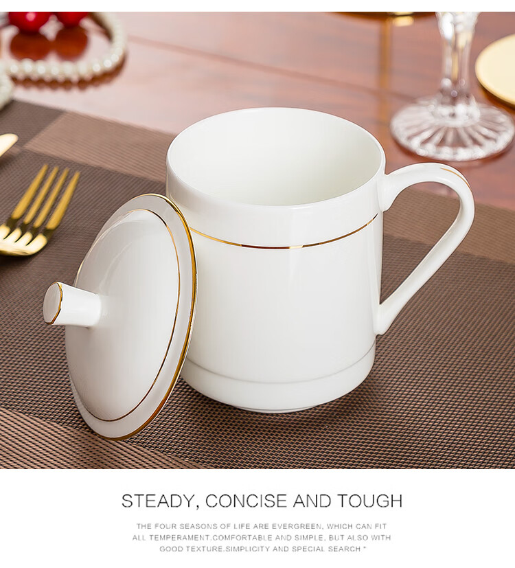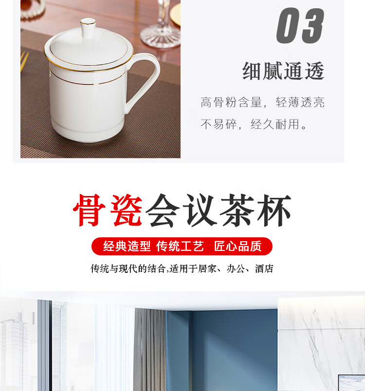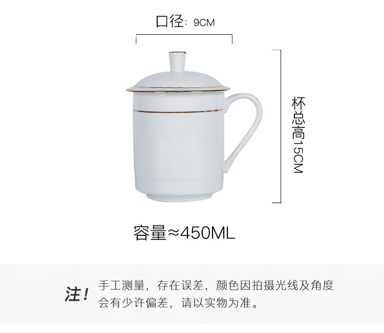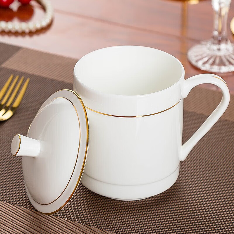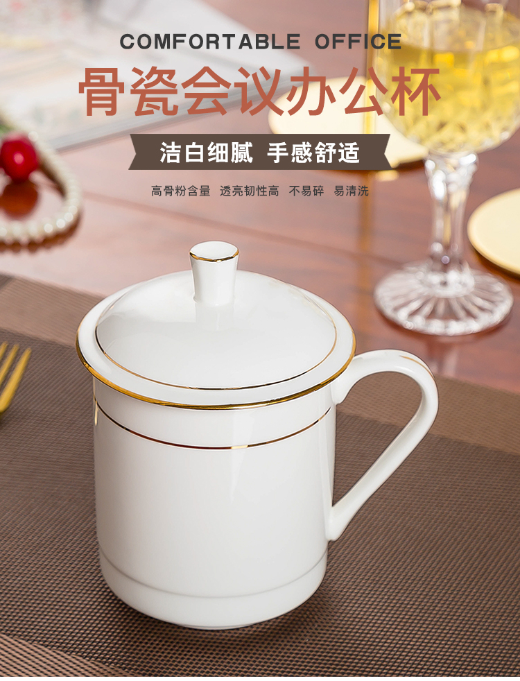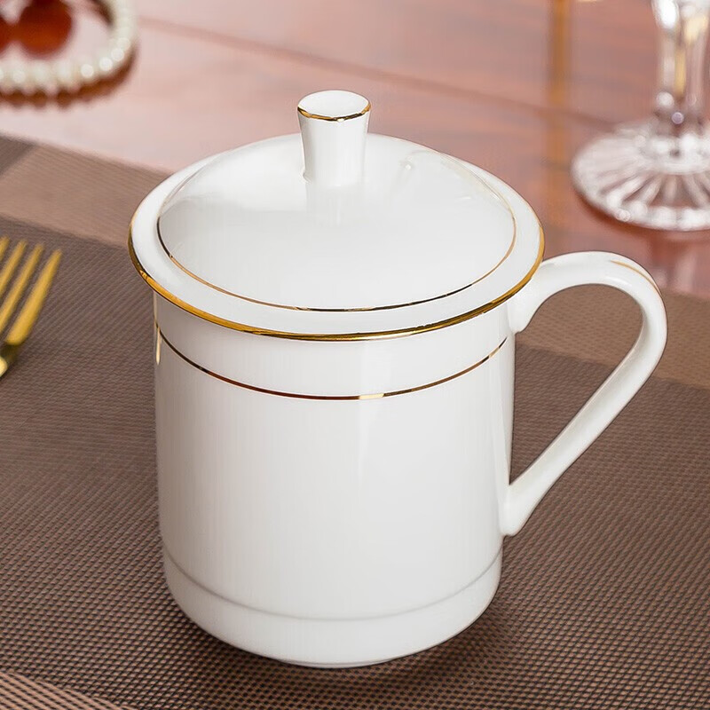 • 商品名称:陶相惠茶杯陶瓷办公杯纯白骨瓷杯子大号带盖会议杯500ml开会水杯10只装 金边大号宫廷杯10只装/套