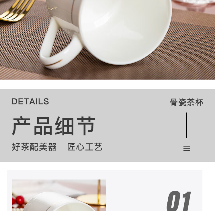 厨具  > 茶具  > 茶杯  >  陶相惠  >  陶相惠茶杯陶瓷办公杯纯白骨瓷杯子大号带盖会议杯500ml开会水杯10只装 金边大号宫廷杯10只装/套