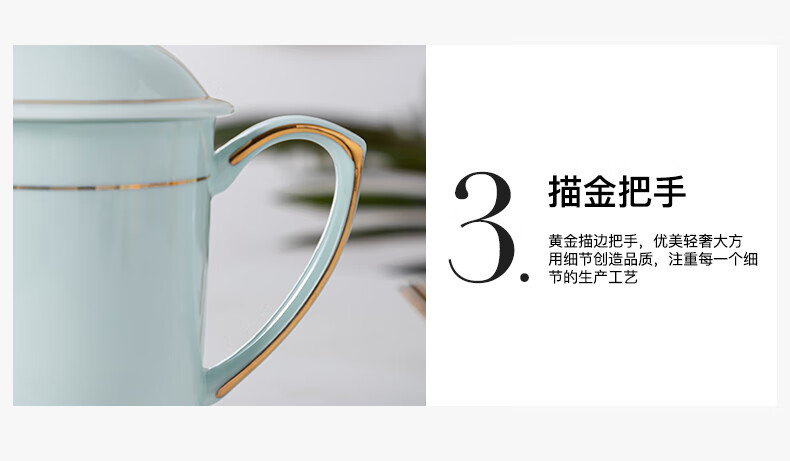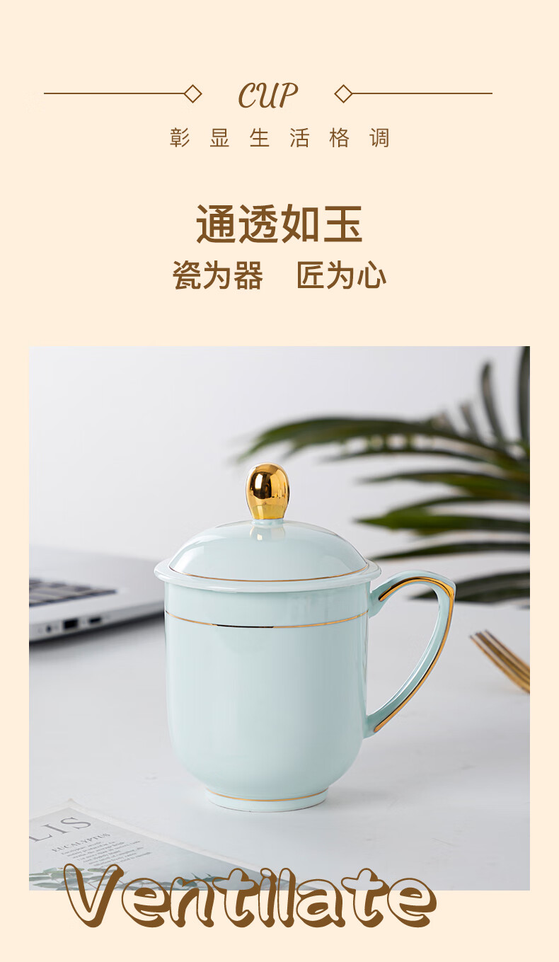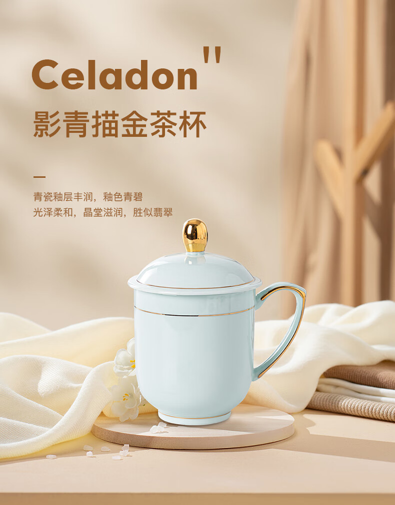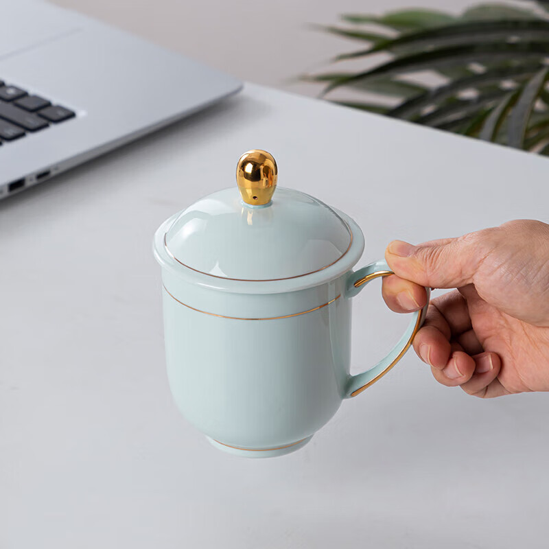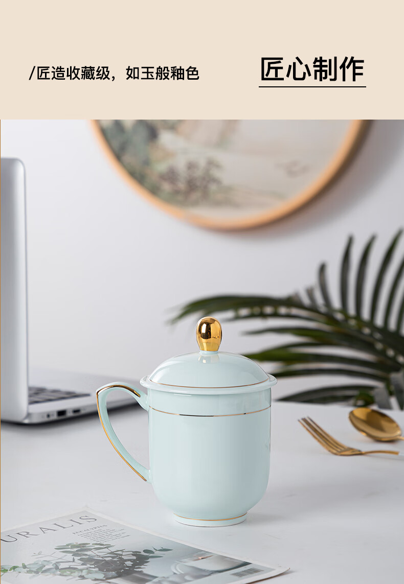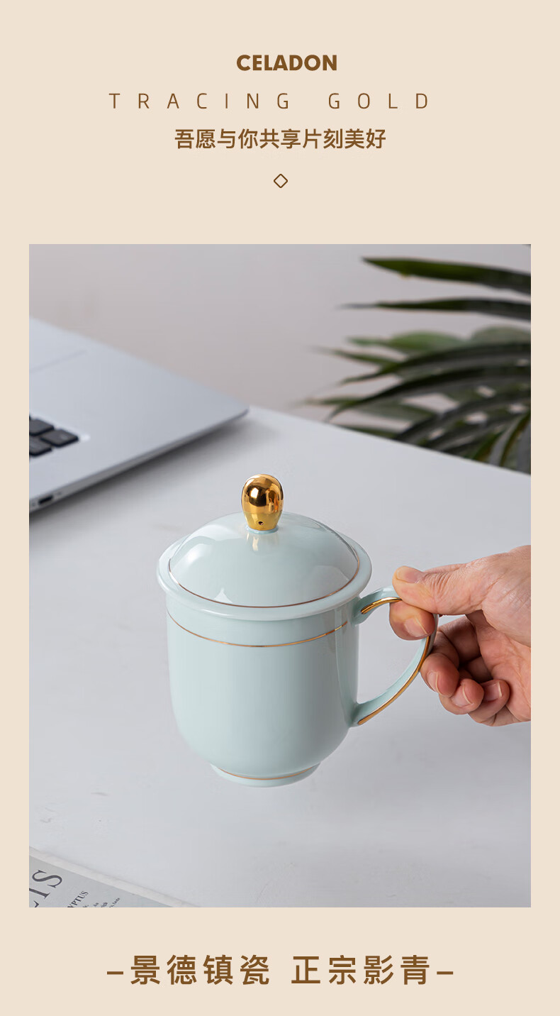 • 商品名称:陶相惠景德镇茶杯陶瓷办公杯带盖家用杯子骨瓷水杯影青瓷会议室茶杯定制 影青会议杯-把金款/个