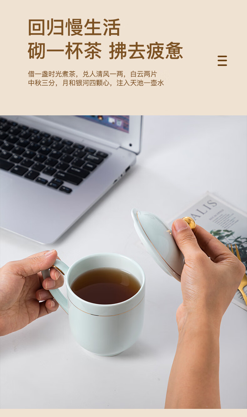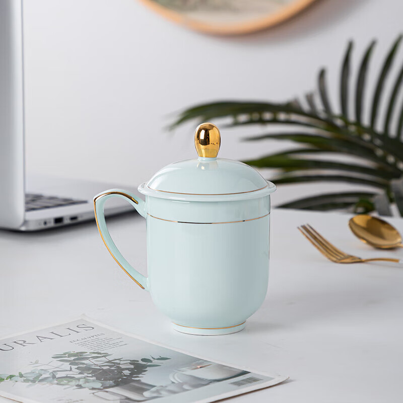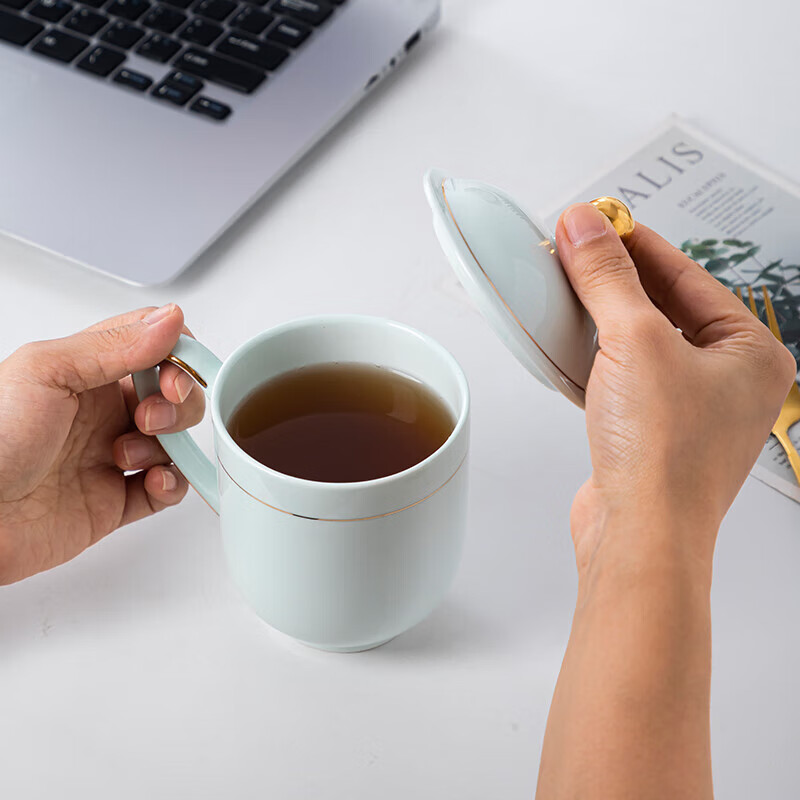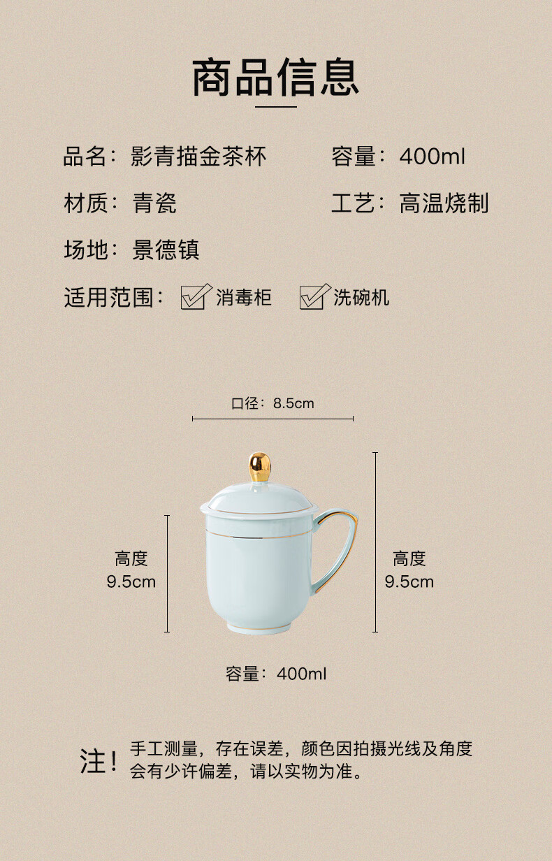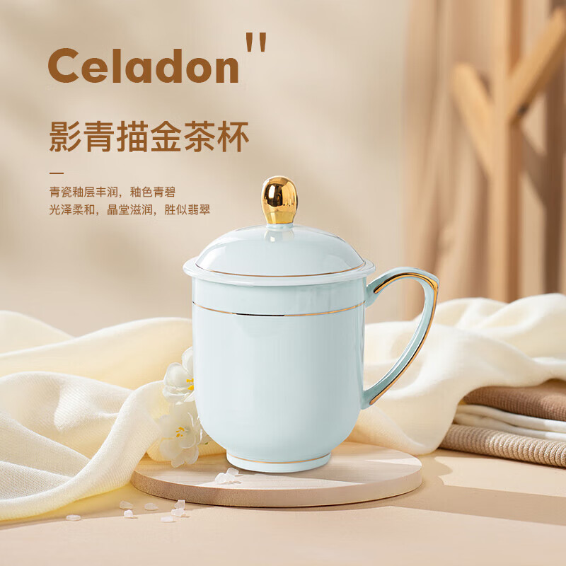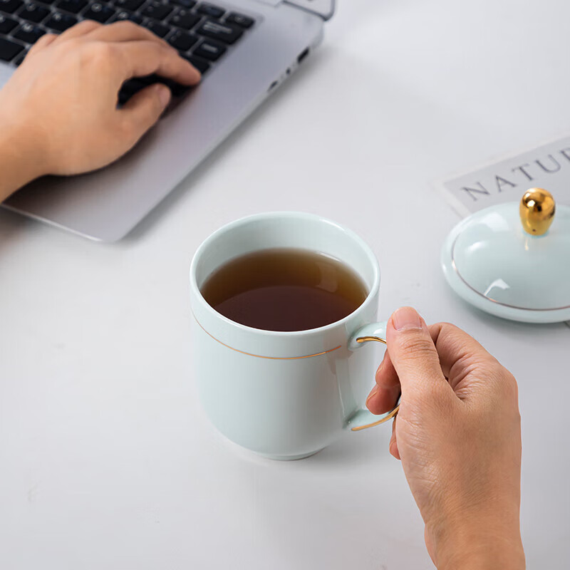 • 商品名称:陶相惠景德镇茶杯陶瓷办公杯带盖家用杯子骨瓷水杯影青瓷会议室茶杯定制 影青会议杯-把金款/个