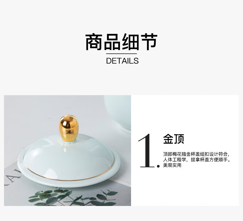 商品名称: 陶相惠景德镇茶杯陶瓷办公杯带盖家用杯子骨瓷水杯影青瓷会议室茶杯定制 影青会议杯-把金款/个