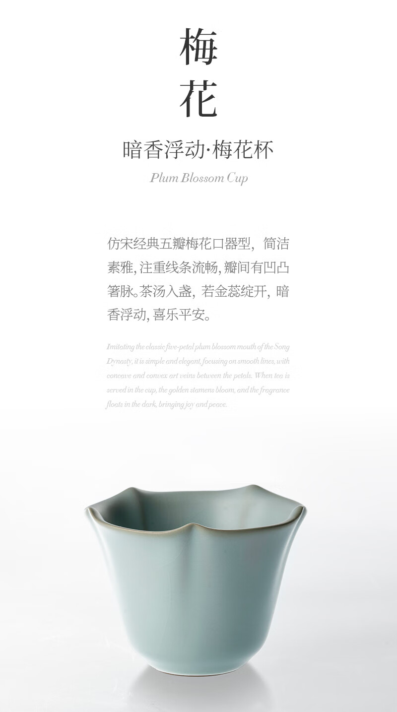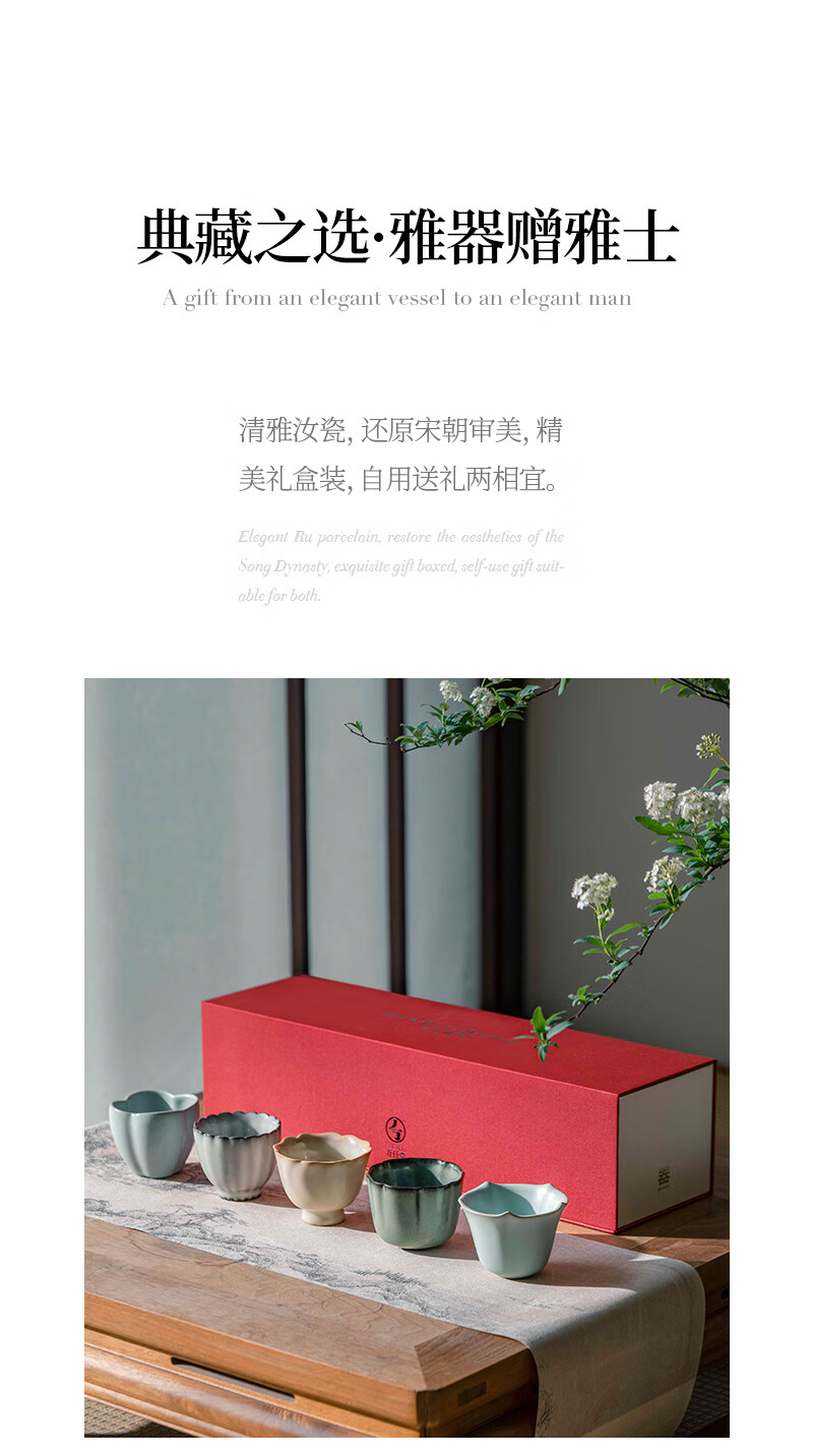 万仟堂茶杯 高档汝窑主人杯礼盒单杯功夫茶杯套组泡茶杯水杯 汝窑典藏 茶杯/套