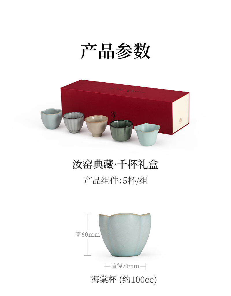 • 商品名称:万仟堂茶杯 高档汝窑主人杯礼盒单杯功夫茶杯套组泡茶杯水杯 汝窑典藏 茶杯/套
