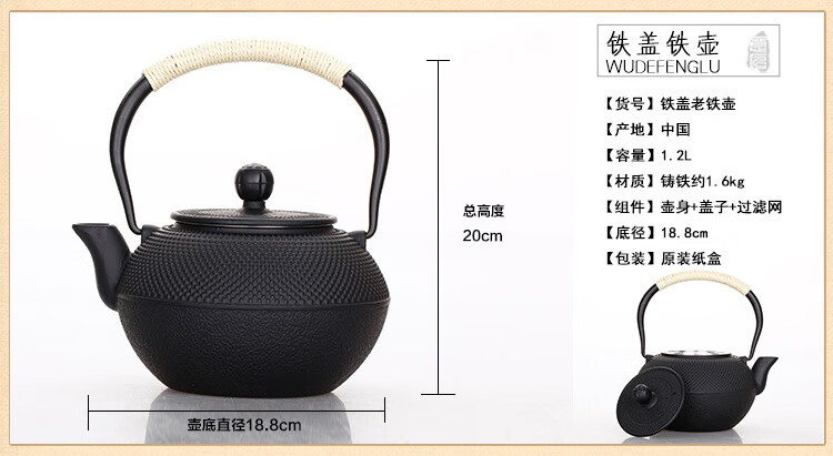 商品名称: 百成道铸铁壶铁壶生铁茶壶 1.6粒子 A/壶