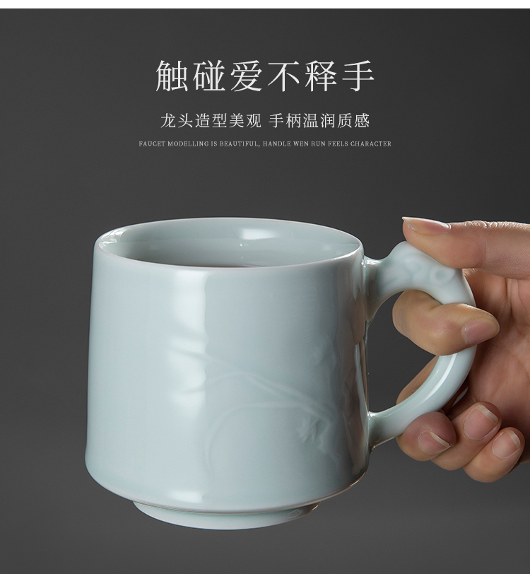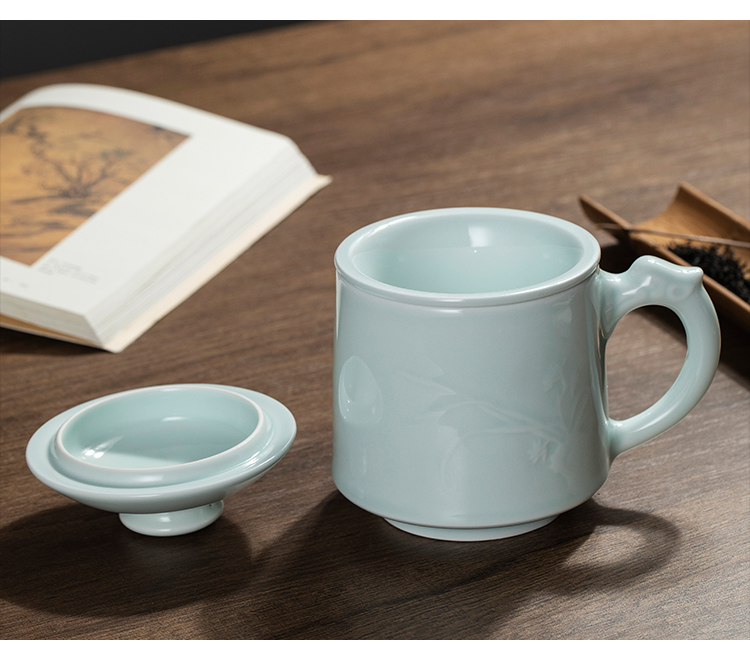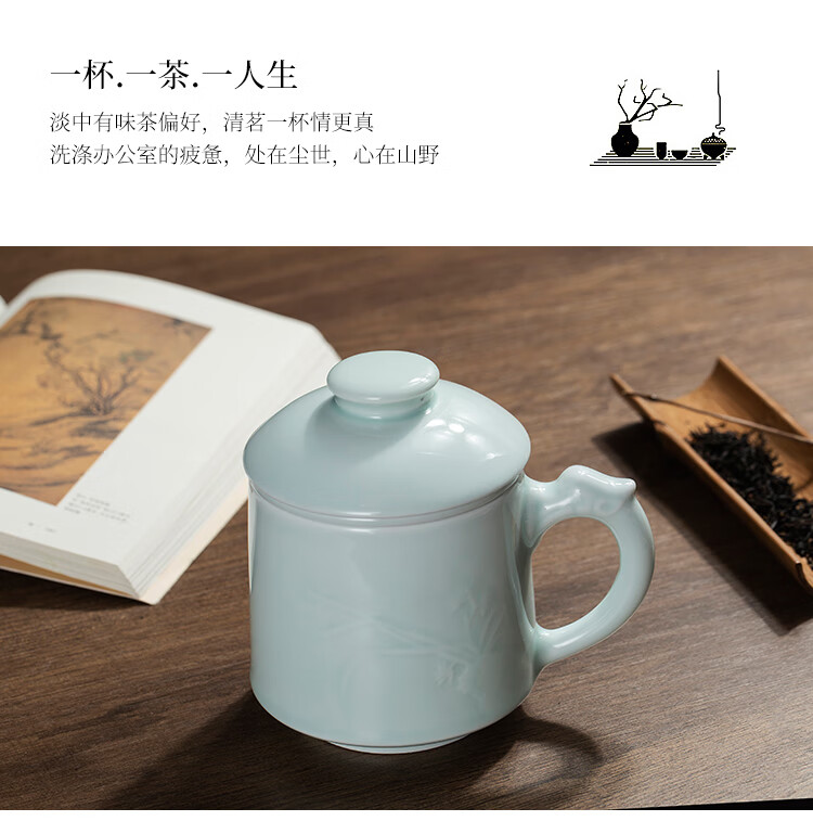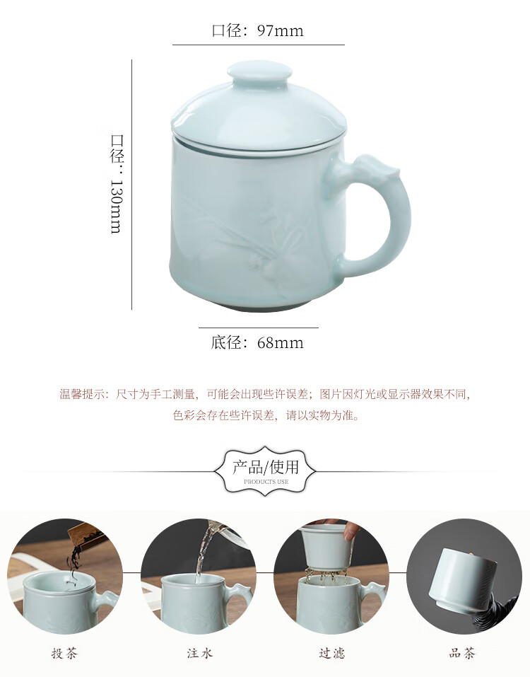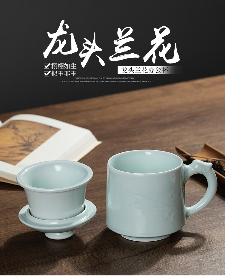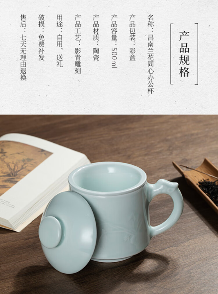 • 商品名称:昌南茶杯 景德镇陶瓷雕刻茶水分离泡水杯带盖茶具办公室杯子 茶杯/个